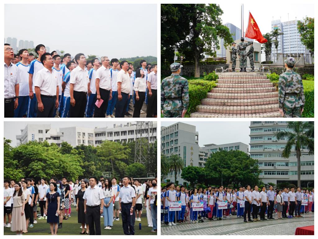 学生代表苏力旦江、戴娆和张丹鹏在国旗下表白祖国,抒发爱国情怀。他们表示,新时代青年要永怀爱国之心,将个人前途与祖国命运紧密联系在一起,自觉承担责任履行义务。他们呼吁所有青年人志存高远,练就过硬本领,用“只争朝夕,不负韶华”的态度珍惜学习时光,将爱国之情转化为报国之行,为粤港澳大湾区建设贡献力量,为祖国更加繁荣富强而努力奋斗!