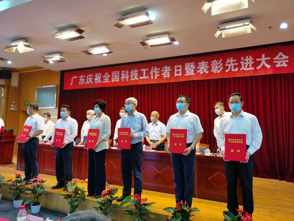 本网讯 5月29日上午,广东庆祝全国科技工作者日暨表彰先进大会,以网络视频的方式在全省21个地级以上市同步举行。大会向国家科技奖获奖代表颁发了配套奖励证书。