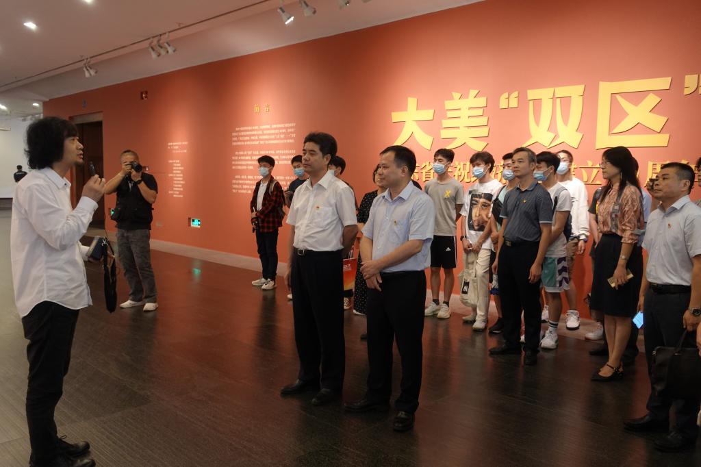 启动仪式后,广东美术馆馆长王绍强为广工师生参观“大美‘双区’——广东省庆祝经济特区建立40周年美术作品展”作导览。学生纷纷表示,作为美术专业的学生,参与这次共建基地的启动仪式并参观展览,既开拓了艺术视野,又提升了文化情操,很有收获,深受熏陶。随后,广工马克思主义学院院长揭晓教授为广东美术馆中层干部及在职党员上党课,进行《习近平谈治国理政》第三卷的学习辅导。