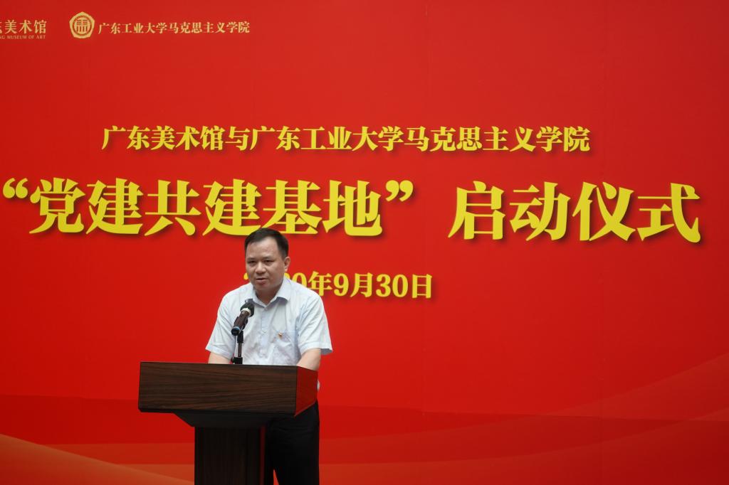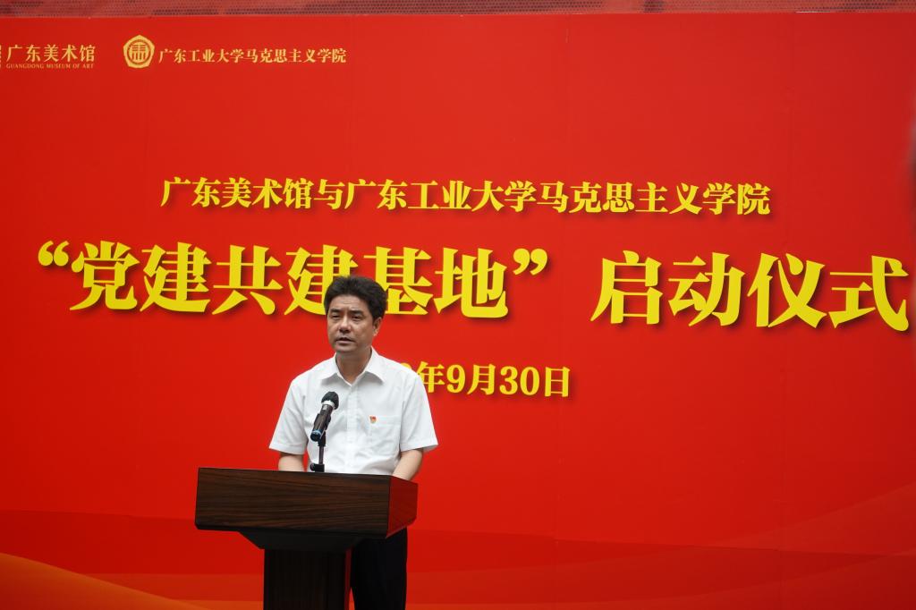 随后,广东美术馆党支部书记王绍强、马克思主义学院党总支书记郑鹏进行党建共建签约仪式。与会领导和嘉宾共同为基地揭牌。