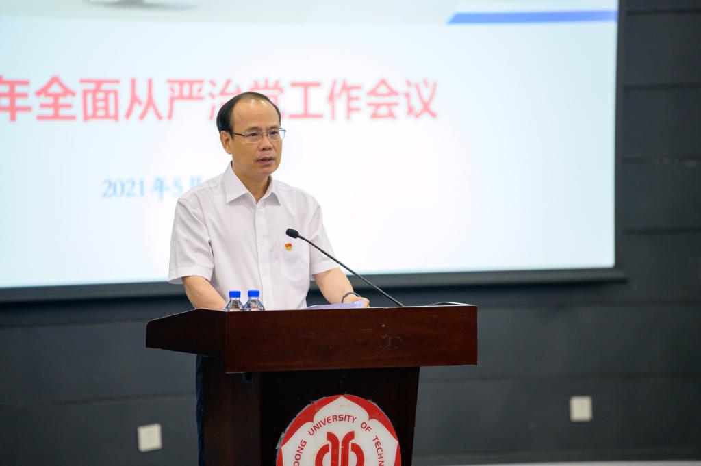 本网讯 5月19日下午,学校在大学城校区大讲堂圆弧报告厅召开2021年全面从严治党工作会议。会议全面贯彻落实党的十九届五中全会、十九届中央纪委五次全会和省纪委六次全会以及全省教育系统全面从严治党工作视频会议精神,回顾过去一年学校全面从严治党工作,研判形势,部署安排今年的重点任务。校党委副书记、校长邱学青主持会议。