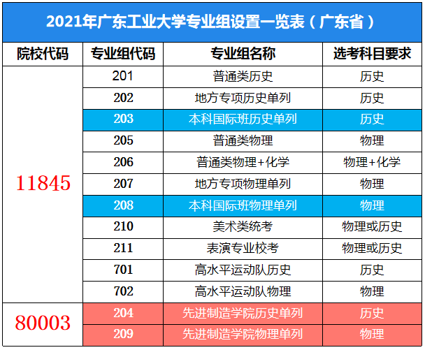 除了普通类的专业组以外,广工还有艺术类2个院校专业组;揭阳校区单列院校代码招生,有2个院校专业组;本科国际班、地方专项单列院校专业组招生,各有2个院校专业组;特殊类型招生高水平运动队也有2个院校专业组。所有这些合起来,广工今年共有13个院校专业组。
