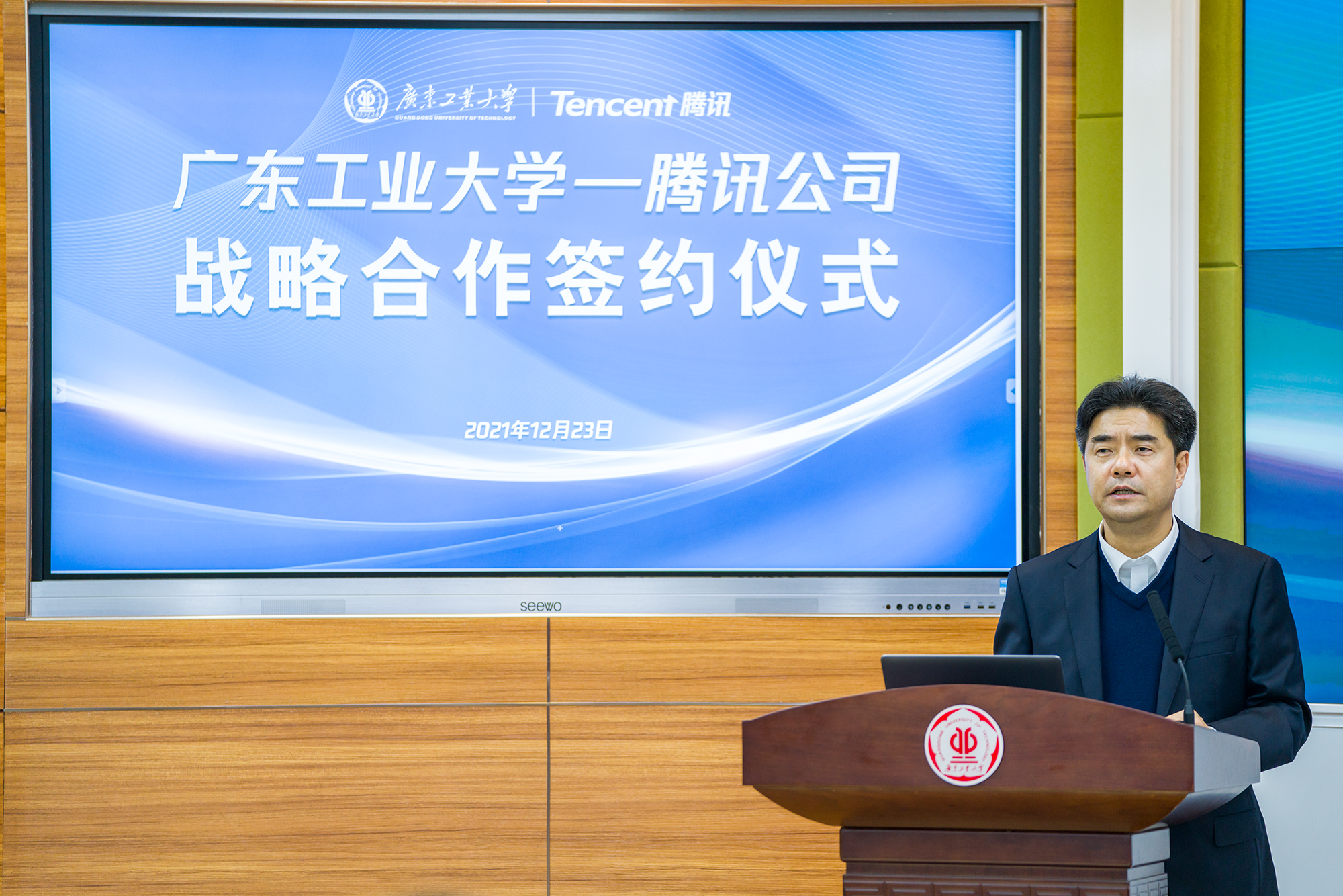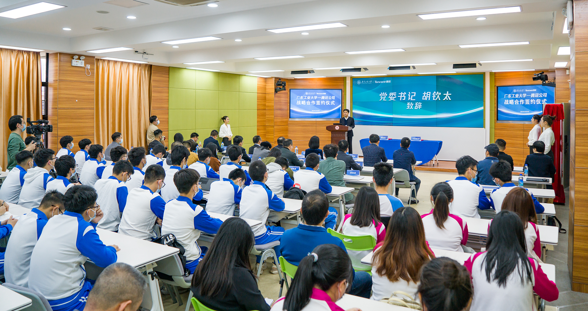 胡钦太表示,学校提出了“六全两化”的重点任务,其中一个重点就是在“十四五”阶段,将以信息化融合创新强力驱动学校的改革发展。通过建设“智慧广工”新基建、新架构、新中台,驱动学校教育教学模式、公共服务体系、治理方式的变革,快速提升学校的国际竞争力,推动学校跨越发展。为深入推进合作,他希望双方合力做好以下三点:一是高点谋划,创新驱动,打造国内智慧校园样板。“以人为本、深度融合”的智慧校园应用体系需要在规划设计上做到三个“高”,即站位高、起点高、标准高,力争在全国教育信息化2.0建设征程中起到引领和导向作用。二是服务核心,数据治理,激发学校潜能与活力。希望发挥腾讯在连接、生态与服务领域的技术优势,推动广工治理体系和治理能力全面提升,激发学校新活力。三是科技赋能,智能连接,构建智慧教育新生态。广工与腾讯云共建的全国首个新流媒体实验中心将致力于跨模态信息的交互融合研究、仿真实验与概念可视化的设计应用研究、跨模态信息在高校教学场景的运用与学生行为分析等研究工作,是积极探索前沿科技,助力高校数字化转型的有益的探索和实践。