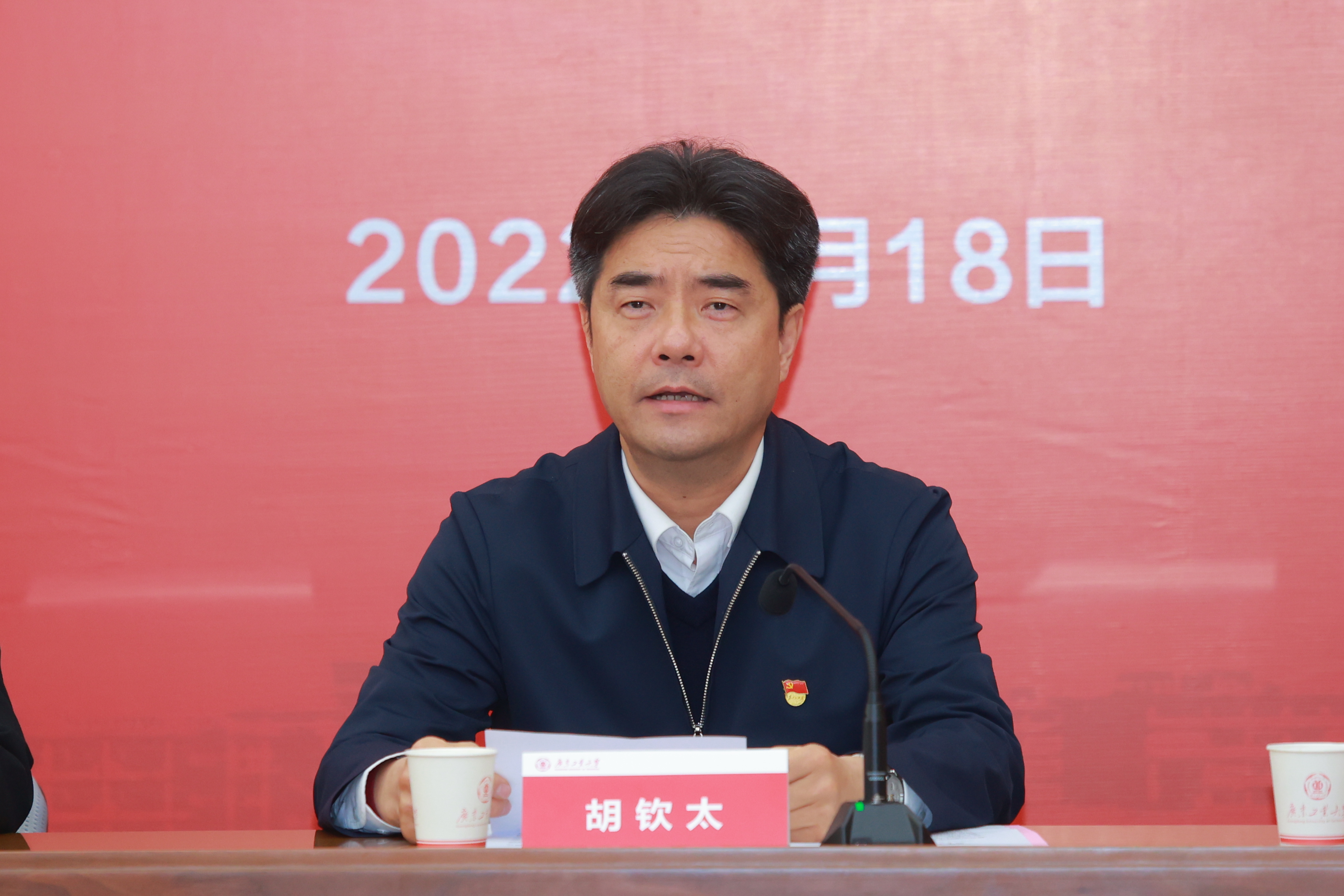 胡钦太在讲话中指出,会议的主要任务是深入学习贯彻习近平总书记重要指示和党史学习教育总结会议精神,全面回顾和总结学校党史学习教育开展情况,认真总结经验,巩固深化党史学习教育成效,不断把学习成果转化为践行初心、担当使命,奋力开创高水平创新型大学建设新局的强大动力和生动实践。