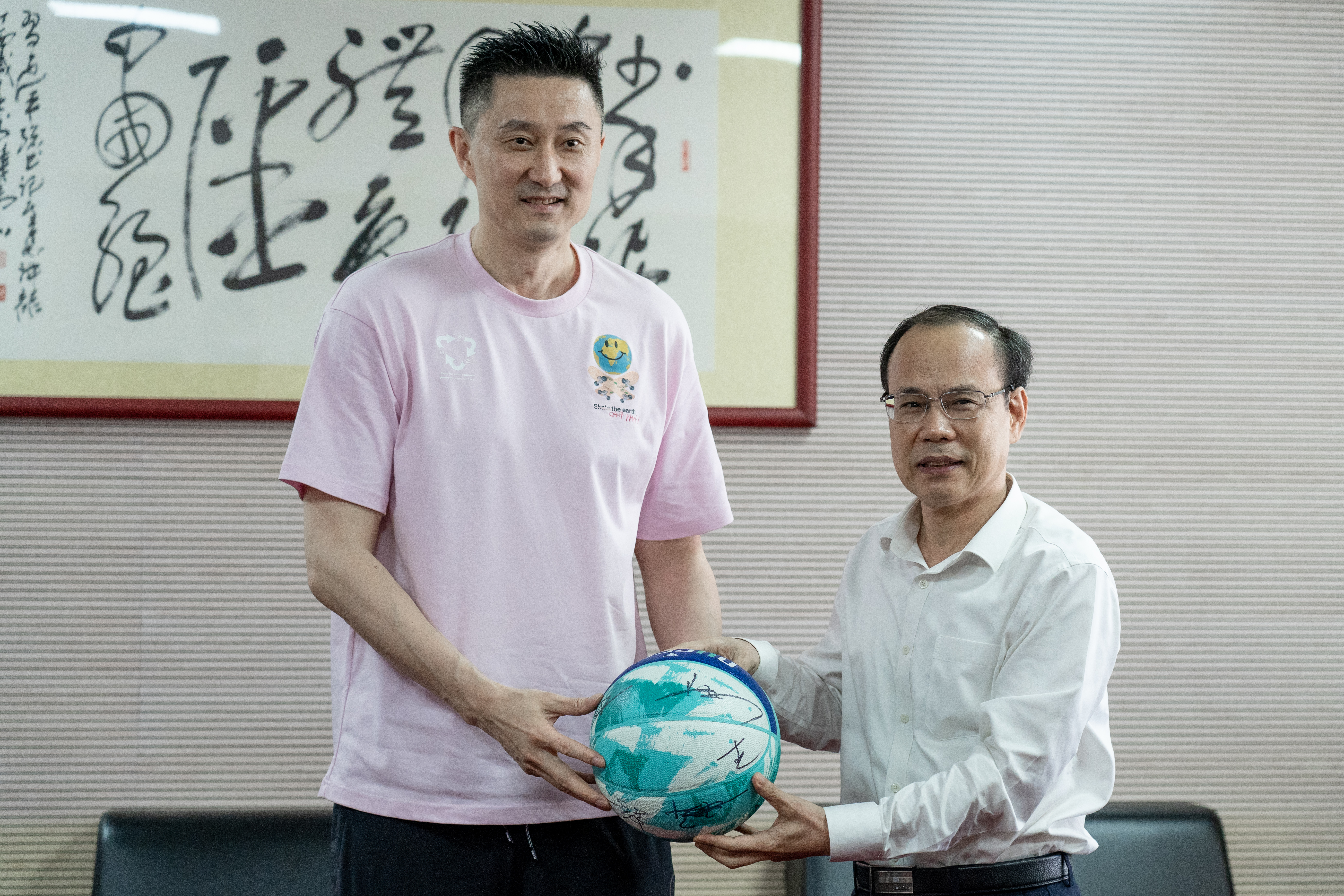 胡钦太对杜锋回到母校表示热烈欢迎,邱学青向杜锋介绍了近年来学校体育发展情况,感谢他回校为师弟师妹带来精彩的分享活动。杜锋感谢母校对自己的培养、关心与支持,希望可以为母校做力所能及的事情。双方互赠纪念品。