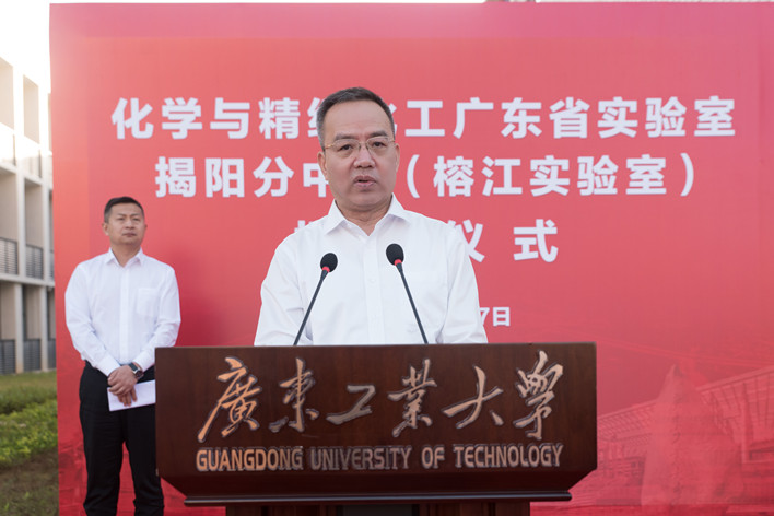 5月17日下午,化学与精细化工广东省实验室揭阳分中心(榕江实验室)揭牌仪式在8xbet网揭阳校区举行。学校党委副书记、校长邱学青与揭阳市委副书记、市长支光南共同为榕江实验室揭牌并致辞。
