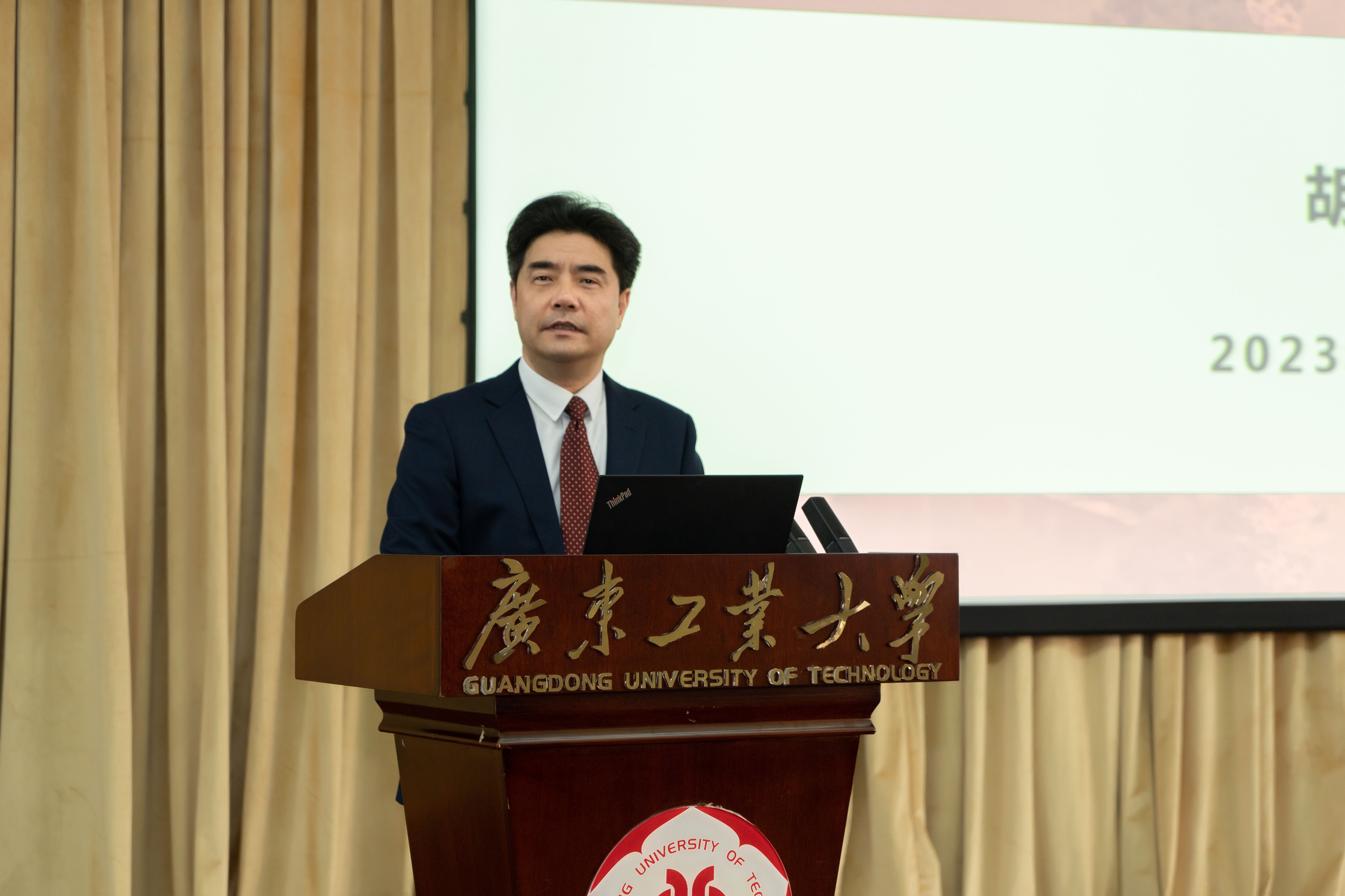 胡钦太从深刻回答好“建设什么样的广工,为广东提供什么样的支撑”的重大命题的角度出发,围绕党的二十大精神学习贯彻、大力推进“冲一流”建设、统筹发展与安全等八个方面,对 2023 年党委重点工作进行了全面部署。一是持续推进党的二十大精神在校园走深走实。结合党中央开展的主题教育,深入开展“大学习、深调研、真落实”工作;扎实推进习近平新时代中国特色社会主义思想“三进”工作;深化“三全育人”综合改革,打造具有广工特色的思政育人体系。二是大力推进“冲一流”建设。加快推进“1+2+3”攀撑计划学科提升工程;加强有组织的科研,着力攻克“卡脖子”难题;扎实做好新一轮学科评估工作;扎实做好新一轮学位点申报工作。三是强化基层党组织建设。围绕2023年“高质量党建推动高质量发展”主题,提升基层党建水平;深化“头雁”工程;深入推进党建品牌建设。四是加强新一届中层领导班子和干部队伍建设。深入实施“干部政治能力提升计划”和“专业能力提升工程”;完善干部选育管用链条。五是深入推进现代大学治理,完善“党委领导、校长负责、教授治学、民主管理、社会参与、依法治校”的治理体系。六是推进全面从严治党向纵深发展。一体推进“三不”体制机制,纠树并举深化作风建设,严格精准监督执纪问责;加强干部教育管理监督,强化权力运行监督制约,推动各类监督贯通融合。七是精心开展本科办学65周年庆祝活动。深化推进校园文化提升工程;校史馆如期开馆;全力打造学术校庆、人文校庆、暖心校庆。八是统筹发展与安全,推进2023发展大事和民生实事,做大发展蛋糕,共享发展成果;抓好疫情防控和学校改革发展,做到“双统筹”“双胜利”。