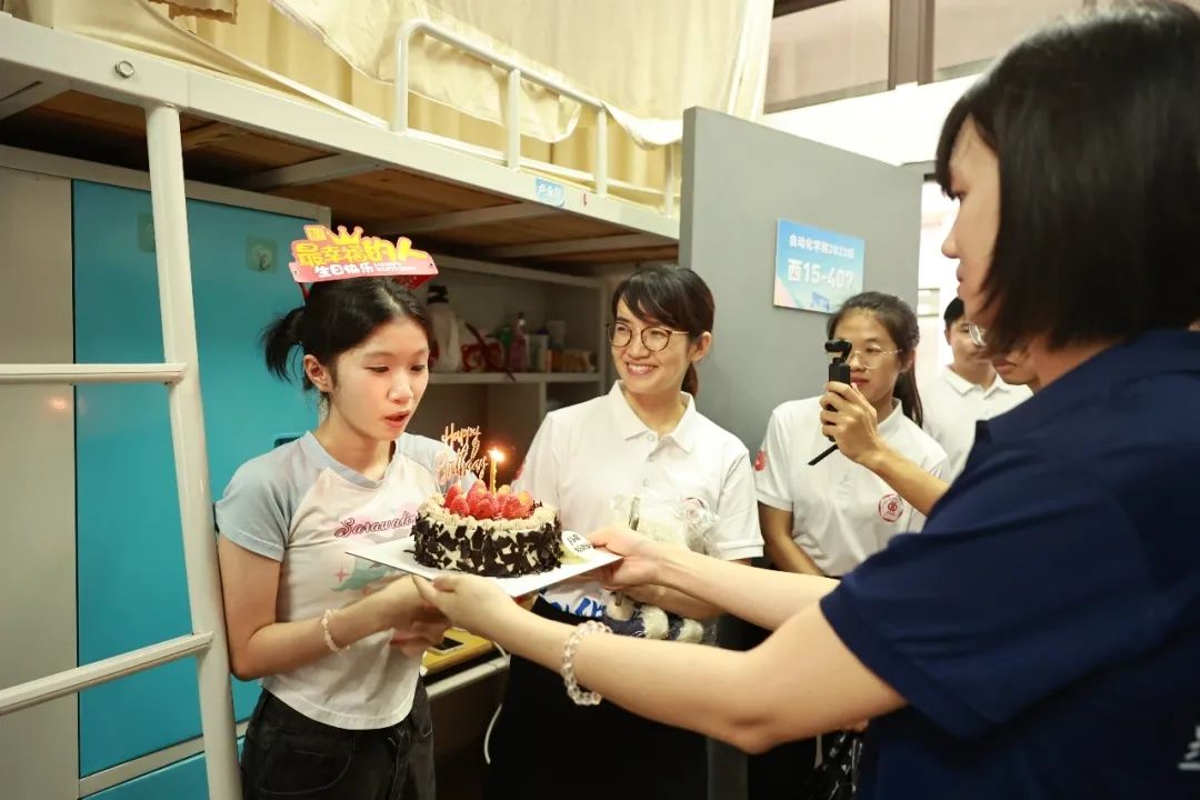 自动化学院为新生准备了精美小礼品,还为报到当天过生日的同学送上生日蛋糕