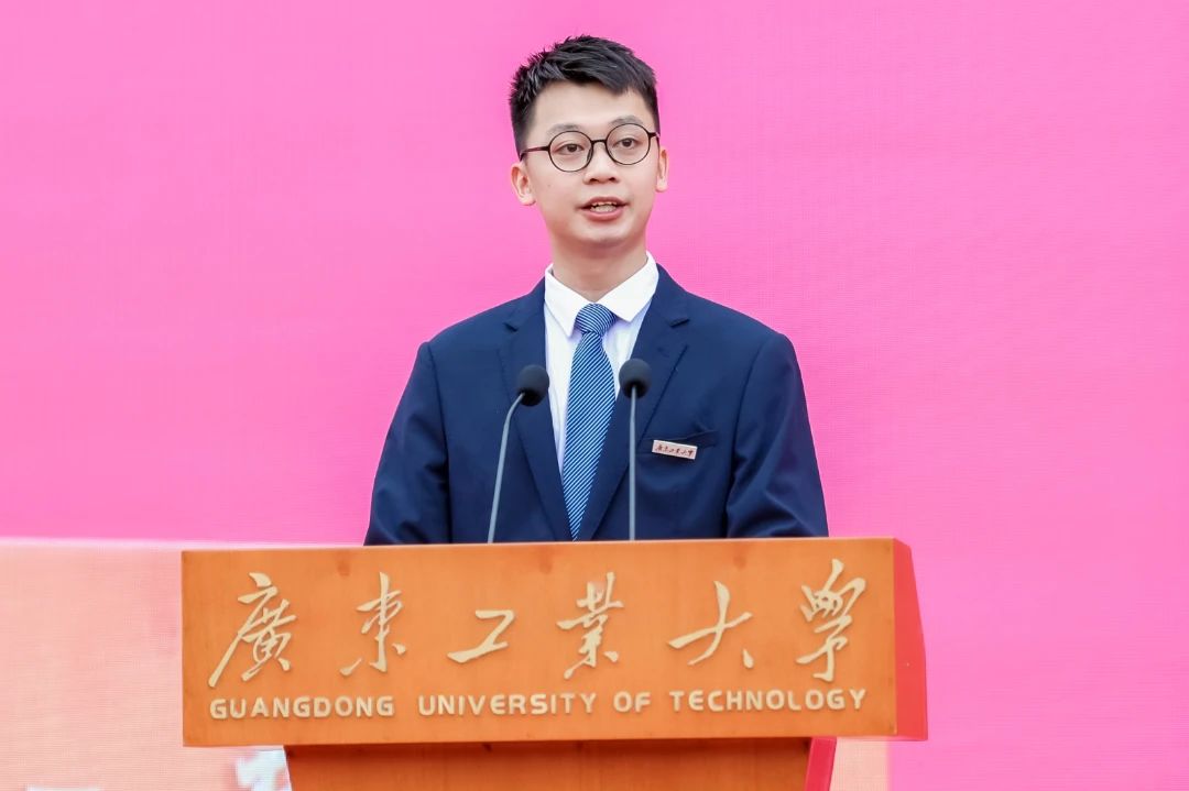 机电工程学院2022级博士生欧伟程代表在校生发言,他结合自己在广工8年的求学经历,向新生介绍了学校浓厚的科研氛围、深度合作的产学研平台以及无微不至的生活关怀和保障。