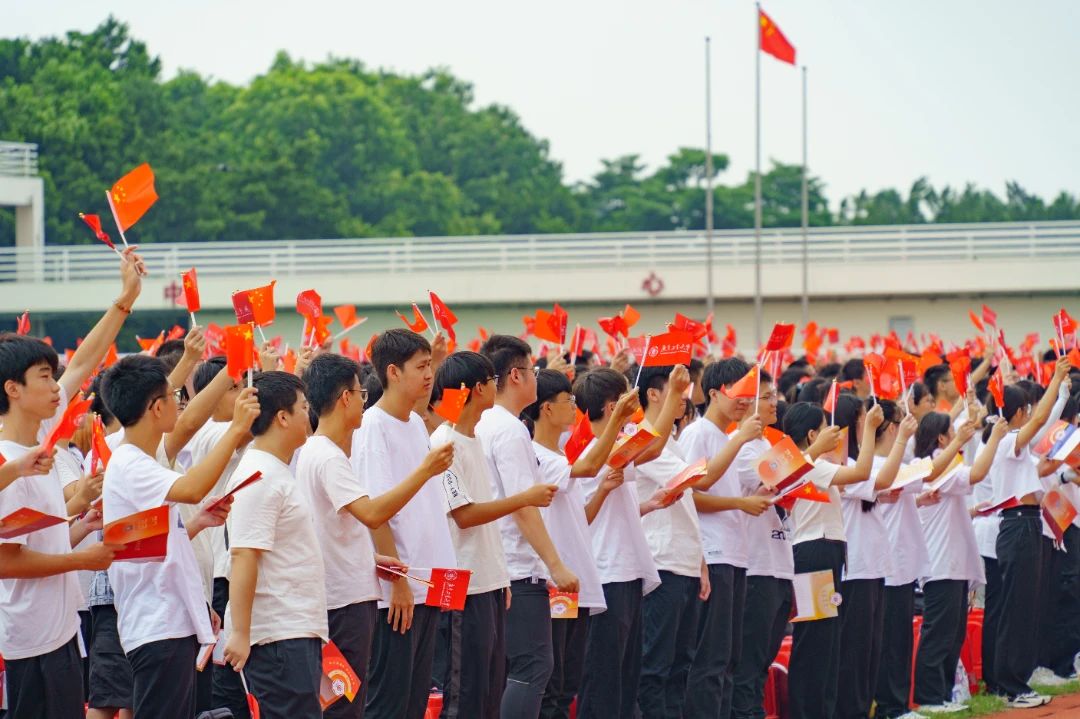 “风起岭之南,潮涌珠江畔。悠远钟声响,初心意气昂……”开学典礼在全场师生共同唱响的校歌声中落下帷幕。