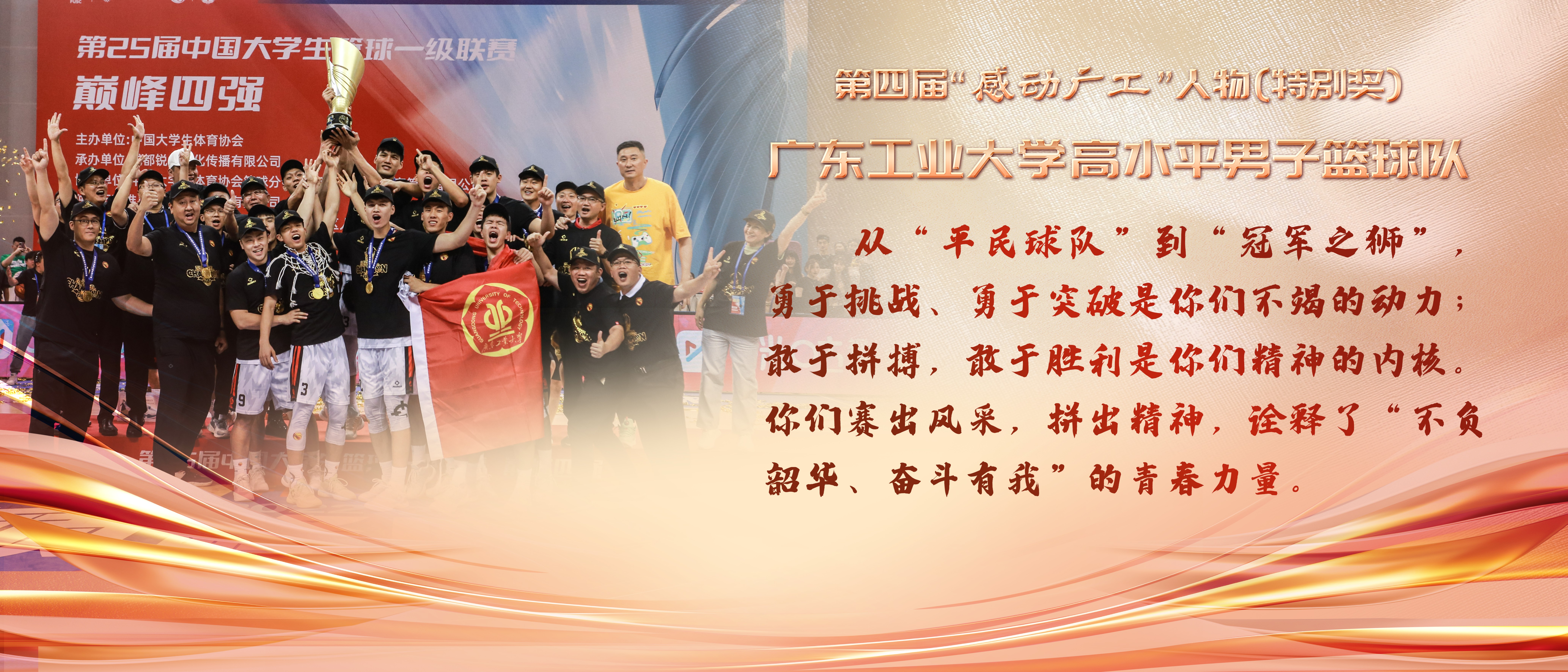 8xbet网第四届“感动广工”人物颁奖盛典旨在致敬感动的力量,凝练和弘扬“广工精神”,打造新时代广工人的精神标杆。活动通过自下而上、层层推荐、大众投票,最终评选出10位第四届“感动广工”人物(群体)。