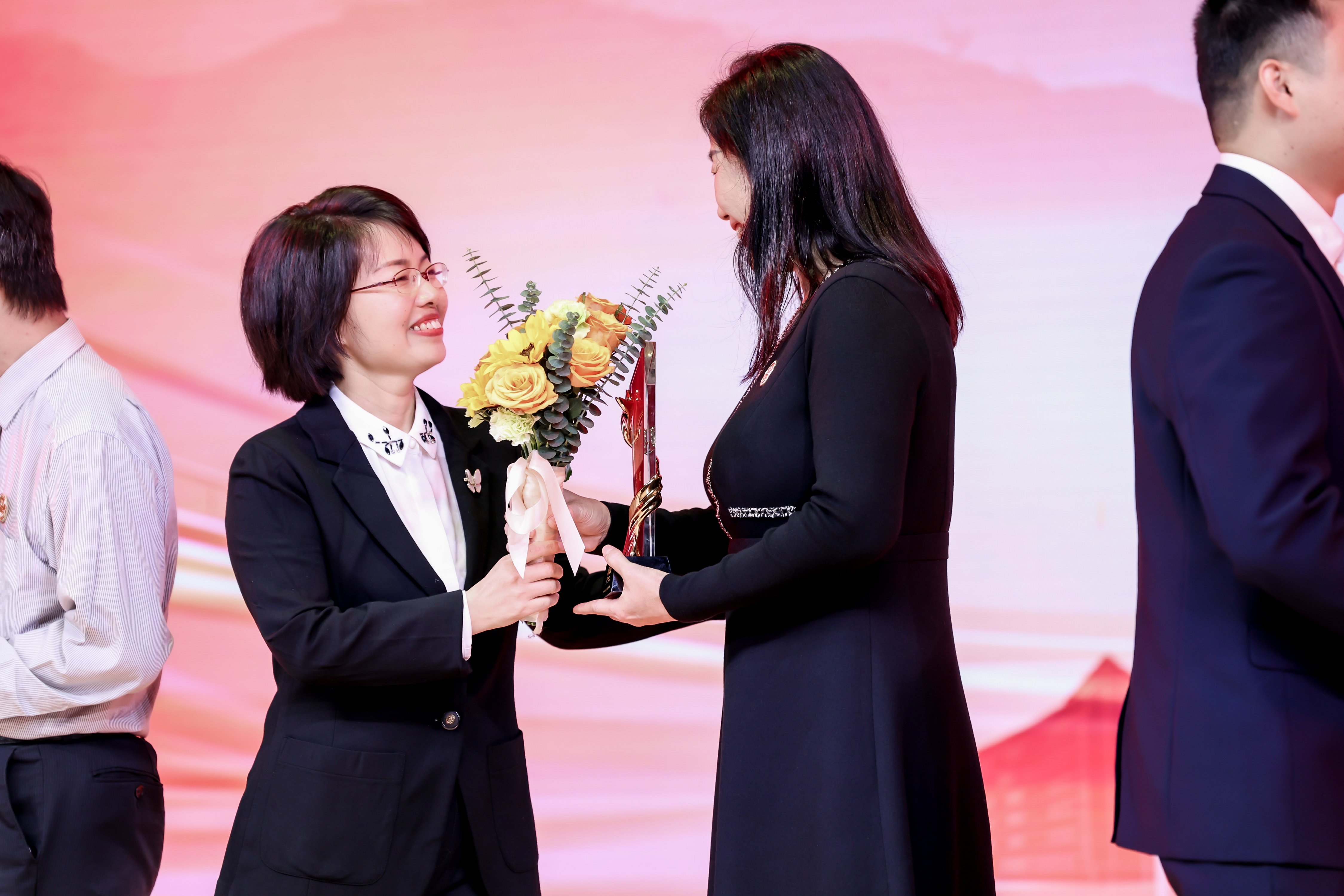 校领导及颁奖嘉宾为“感动广工”人物(群体)颁发奖杯和证书,师生代表分别献花致敬。一位位充满正能量的身边先进典型,一阵阵雷鸣般的掌声……颁奖典礼引发热烈反响,身边的感动人物为校园带来了奋进的力量。典礼上,主持人通过现场访谈,展示“感动广工”人物背后的故事;大屏幕播放的事迹短片,描摹广工人奉献敬业、奋力担当的模样;舞台上精彩的舞蹈表演,鲜活展现了为国家发展做贡献的形象。现场还邀请了感动人物的父母、师友和学生,讲述动人事迹,为亲人骄傲和加油。“淡泊名利一心育人”“温故知新感师恩”……观众席中亲友团手举横幅海报,向心中的榜样致敬。