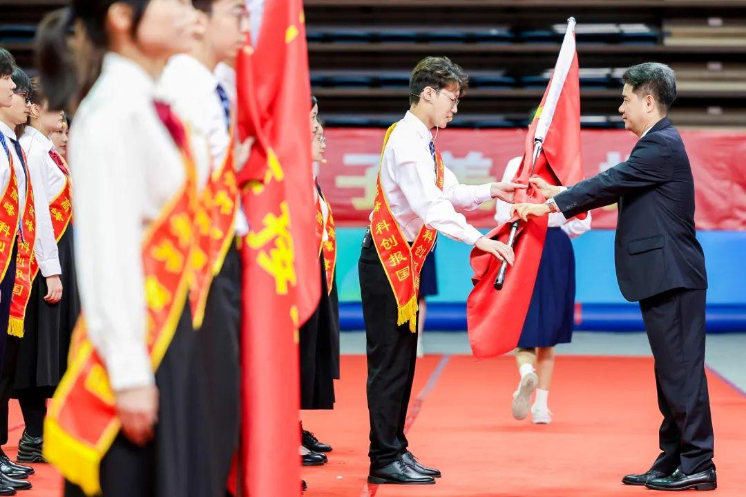 “同学们,出征!”带着母校的期望、师友的祝福,毕业生即将奔赴祖国各地开启新的奋斗征程。由投身不同就业领域的优秀毕业生代表组成的“基层就业服务团”“大国工匠接班人”“科研创新攀撑者”三个毕业生代表团登台接受胡钦太授旗。