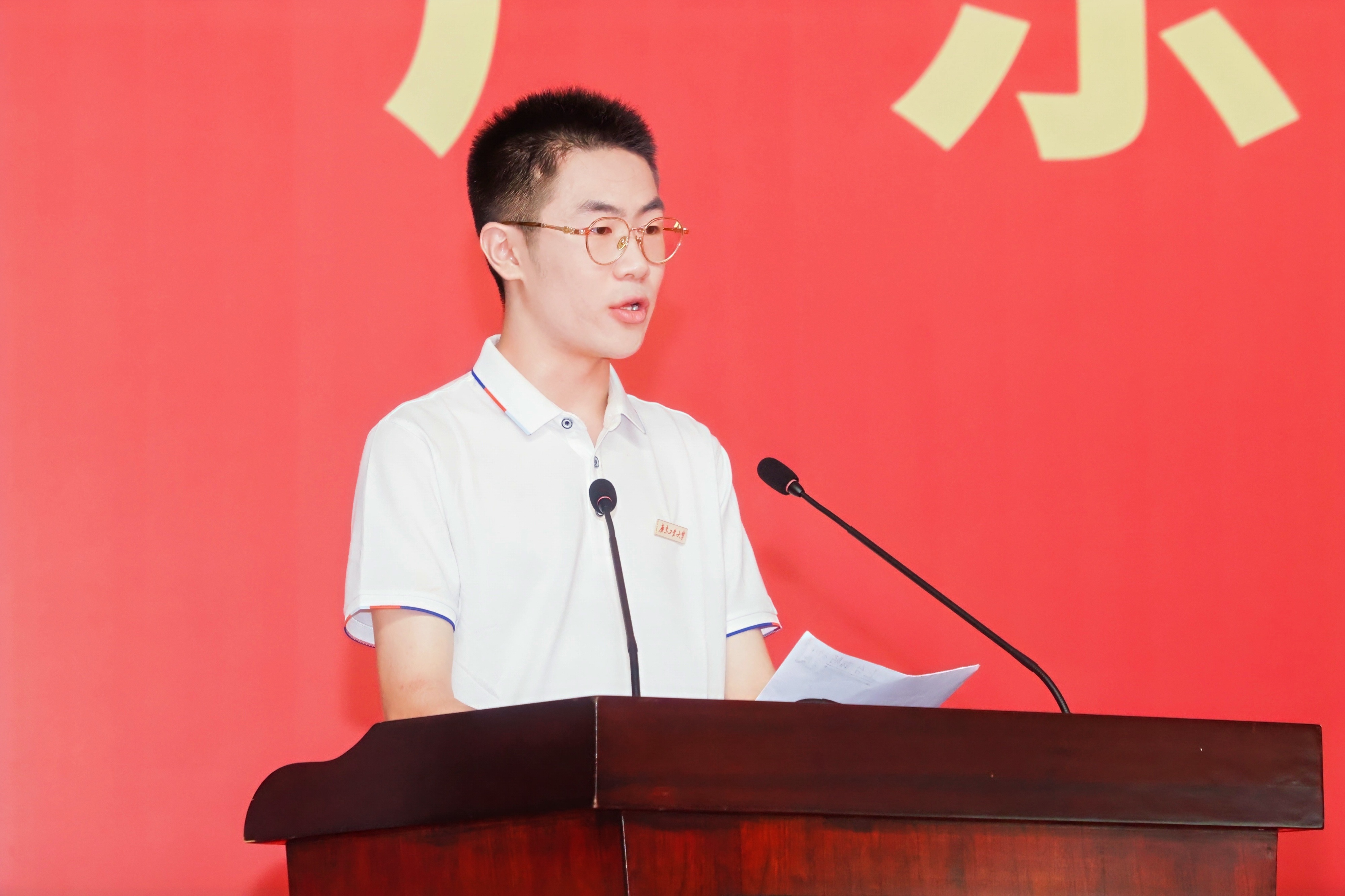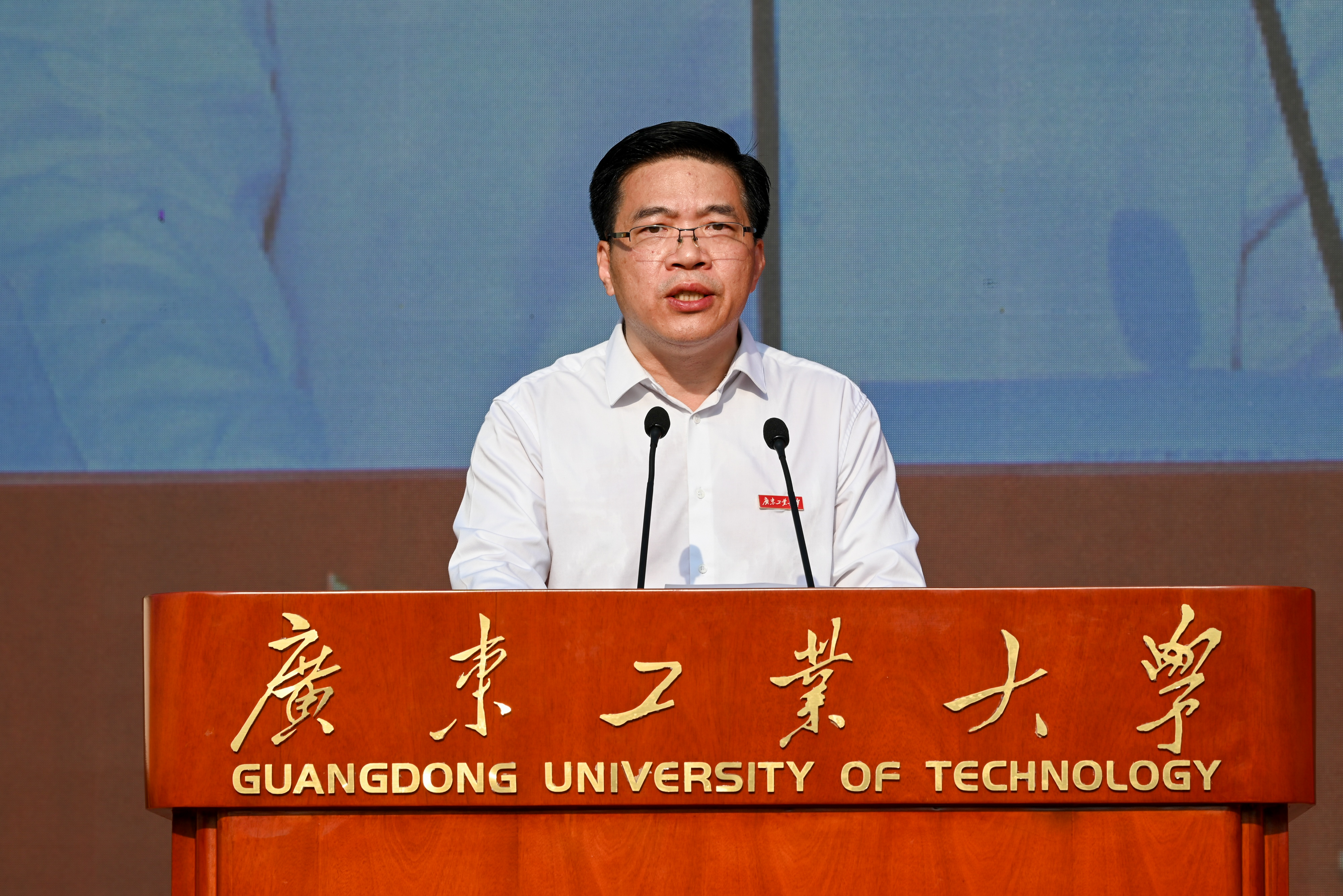 邱学青以《争做攀撑广工人 勇当新质生力军》为题作讲话。他代表学校对新同学表示热烈欢迎,“寒窗之旅,冠军之路,背后是共同的拼尽全力,是一样的永不放弃。”他表示,送给大家的“热血青春‘篮’不住”为主题的录取通知礼盒以及签名球衣,传递的不仅仅是祝贺和喜悦,更寄托传承着“勇于拼搏、敢于胜利”广工精神。“选择广工,你们将度过怎样的大学生涯?”他说,唯有经历钻研之苦,面对质疑之辣,承受挫折之酸,方能品味成长之甜,最终找到属于自己的精彩答案。