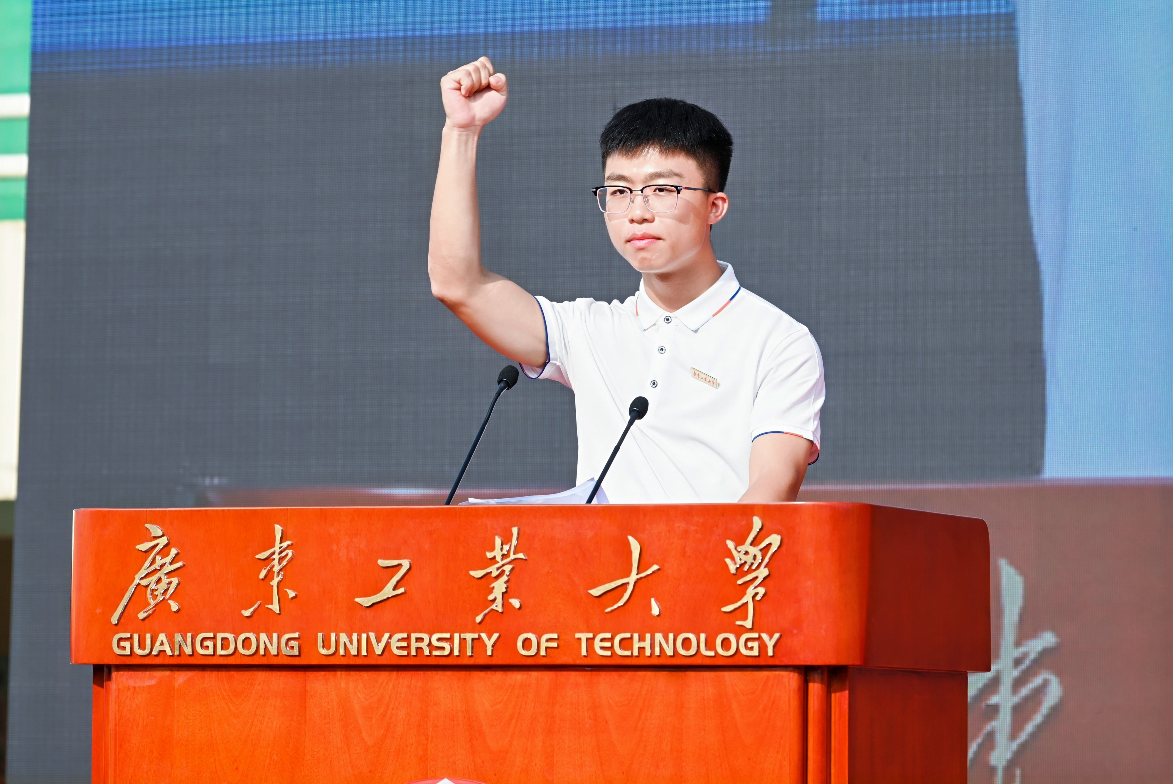 “我宣誓:坚定信念,牢记使命;热爱祖国,遵纪守法……”典礼上进行了新生入学宣誓仪式,誓言铿锵、久久回响,展示了广工学子昂扬向上的精神风貌,彰显着攀撑奋进的不懈追求。