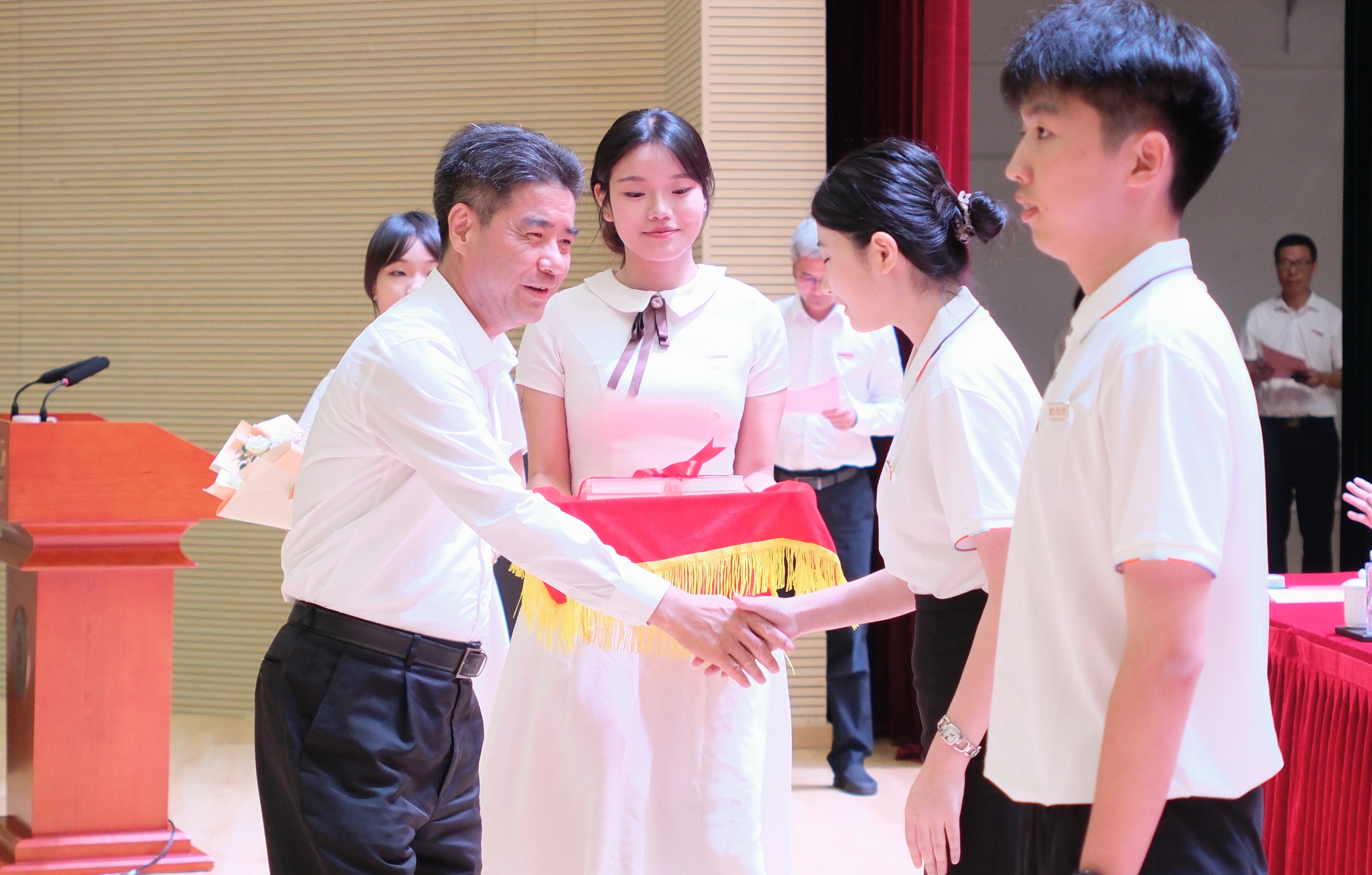 邱学青对“生逢其时、重任在肩”的新同学们提出了三点希望:一是志存高远,脚踏实地,为“逐梦”破局立势,“美好的理想不会自动成真,远大的志向不会一蹴而就,”希望大家把“攀撑精神”融进血脉,逐梦步履永不停息;二是立身百行,以学为基,为“提质”夯基垒台,希望大家把“要我学”变为“我要学”,求真学问,练真本领,在广工这片科研创新氛围浓厚的沃土承担起推动科技创新、实现科技强国的历史使命;三是躬身入局,扛鼎担责,为“强国”奋楫笃行,希望大家以敏锐的观察力发掘社会需求,以倾听的姿态捕捉人民心声,以积极的行动回应时代召唤,成为有理想、敢担当、能吃苦、肯奋斗的新时代青年。