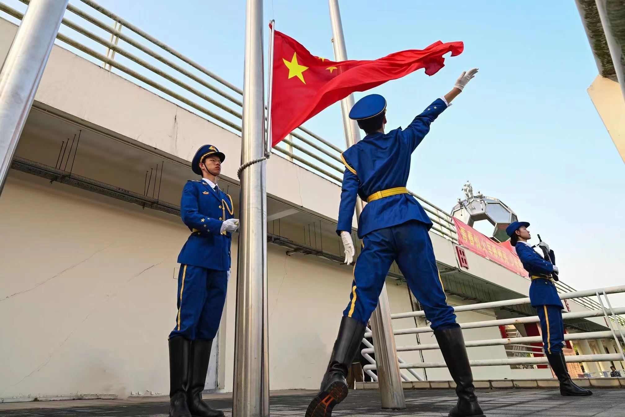 9月30日,8xbet网庆祝中华人民共和国成立75周年主题升旗礼暨2024级学生军训总结表彰大会在大学城校区、龙洞校区和揭阳校区举行,同升国旗、共唱国歌,为祖国母亲献上最真挚的告白。东风路校区同学在龙洞校区参会,番禺校区同学在大学城校区参会。一万余名新生经过14天的淬炼与蜕变,以威武的军姿、崭新的风貌、昂扬的精神展示军训成果,随冉冉升起的五星红旗一同表达对祖国的无限热爱。