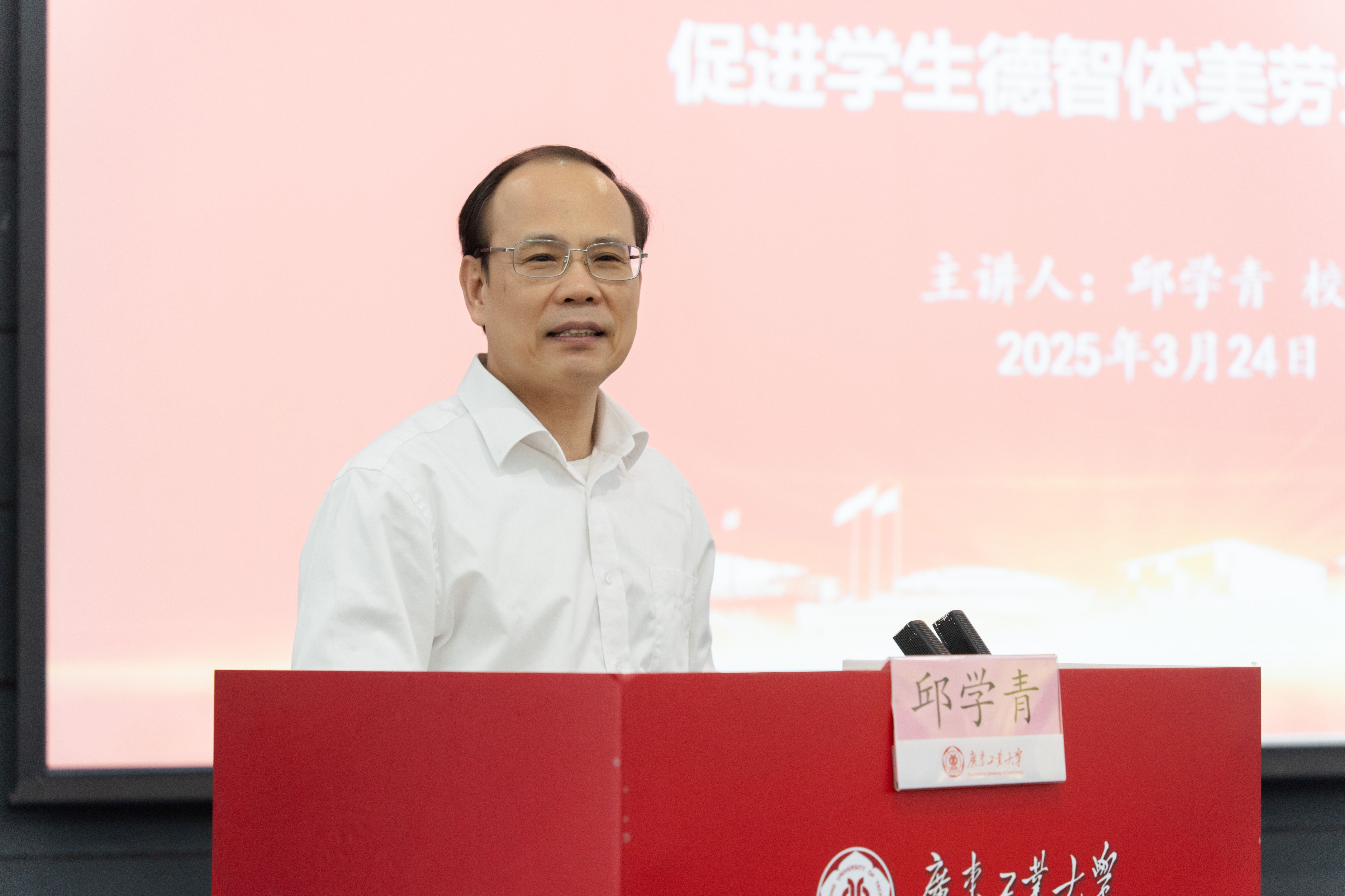 邱校长表示,老师们、同学们要认识到这些成绩的来之不易,既有建设教育强国时代背景下的“天时地利”,更离不开全体广工师生众志成城的“人和”,强调老师们、同学们要以更加自信自强的思想认识与行动自觉投身到学校建设中,科学看待学校改革发展过程中出现的问题,以实际行动呵护广工这个共同的“家”,既要当好学校发展成就的“宣传员”,更要努力做学校优良校风的引领者与各方面事业改革创新的开拓者。