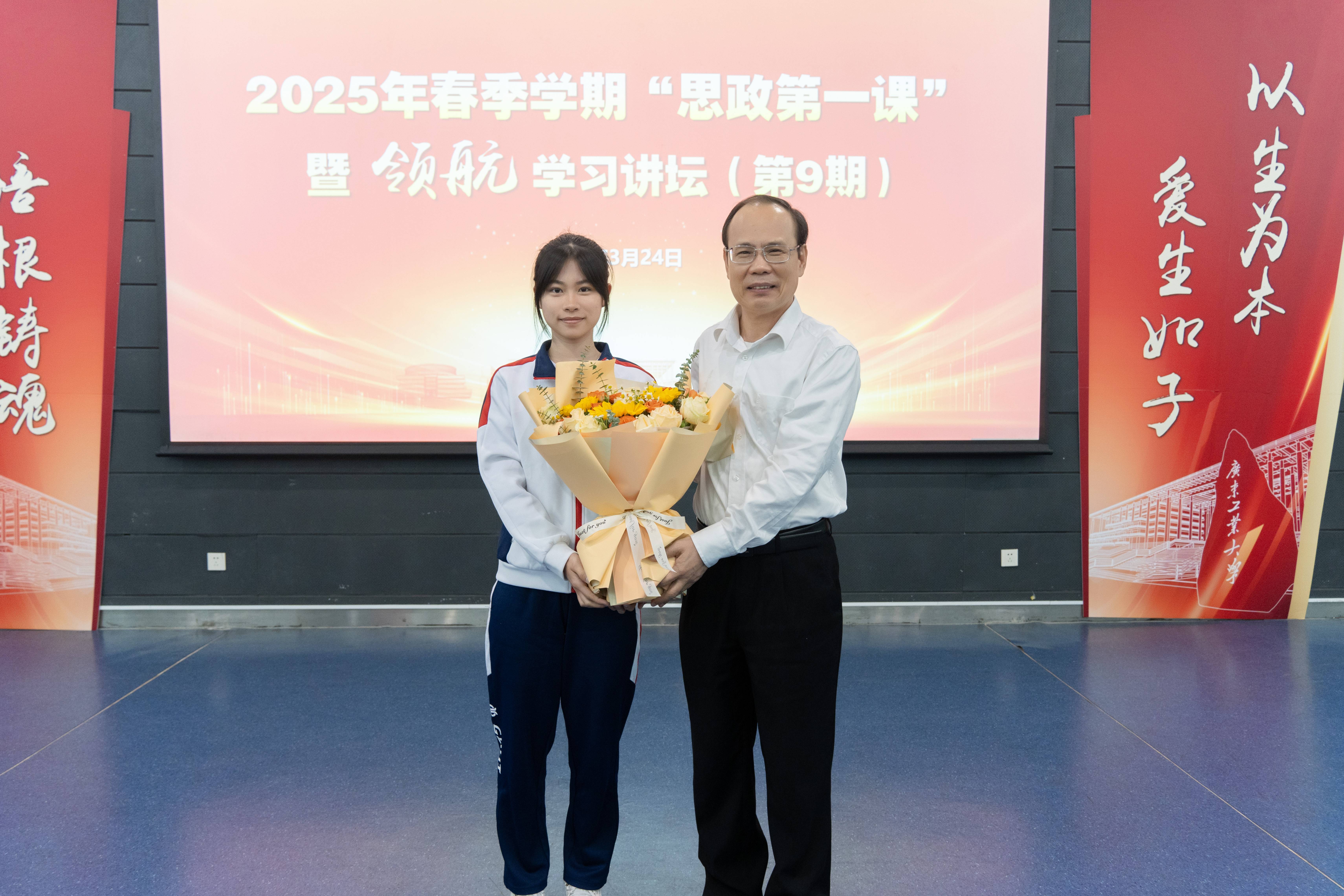 学生代表向邱校长献上鲜花并致以谢意。大家表示,邱校长的辅导报告政治站位高,思想内涵深远,既饱含着一名校长的谆谆教诲与殷切嘱托,也彰显一位师长为学从教初心与育人育才担当,令人深受启迪、受益匪浅,将牢记邱校长嘱托,在“团结、勤奋、求是、创新”校训精神引领下,进一步发挥好示范引领作用,刻苦学习、认真工作、奋发有为,为学校锚定目标冲一流,加快建设高水平创新型大学贡献更大力量!