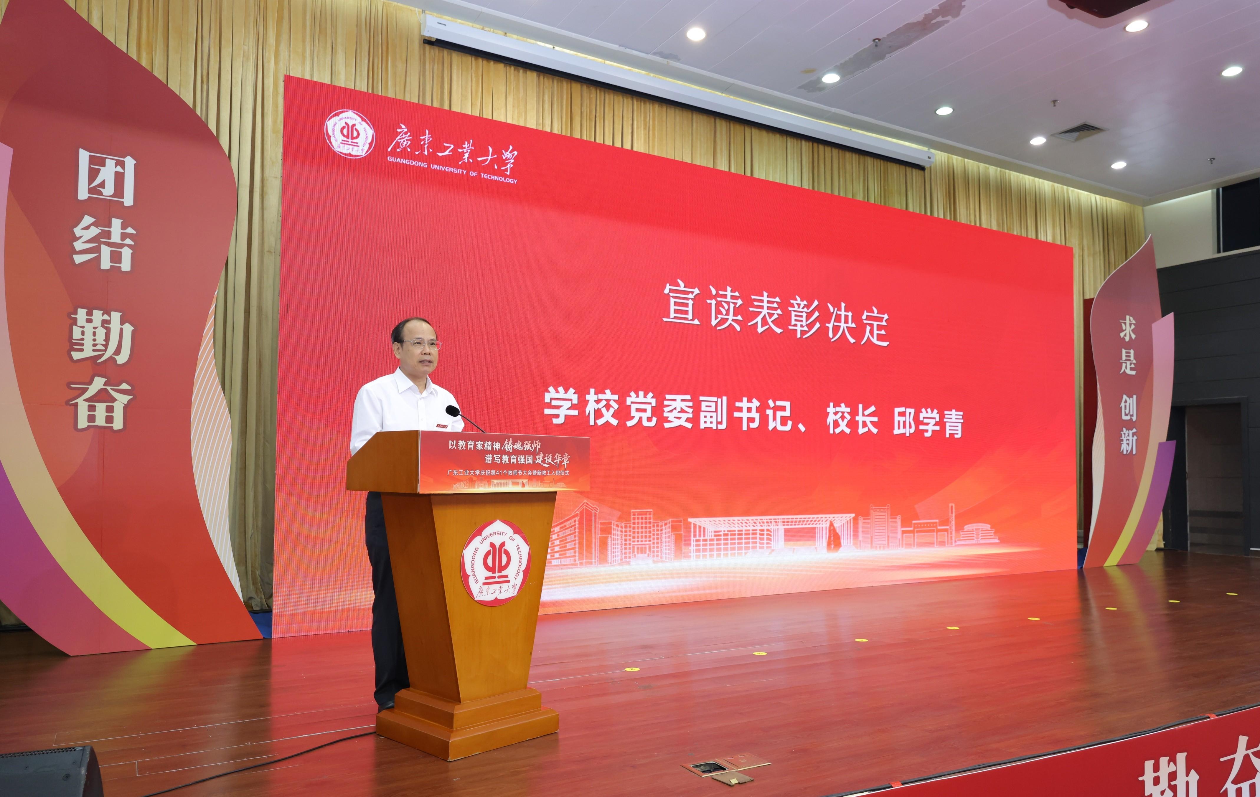 赓续师道薪火,勇担育人使命。全体教职工将以“四有好老师”为镜,笃行不怠育英才:做学生成长的“筑梦匠”,以人格魅力浸润心灵;当创新教育的“擎炬者”,用学识智慧点亮未来;成为科教兴国的“先锋队”,为国之重器锻造栋梁;勇做学校跨越的“奋进者”,与腾飞中的广工同频共振、并肩驰骋,在新时代的壮阔征程中,共绘“冲一流”建设的璀璨华章。