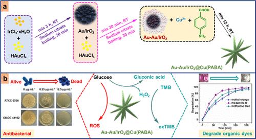 本网讯 近日,生物医药学院赵肃清教授课题组在美国化学学会旗下著名期刊ACS Applied Materials & Interfaces(IF=8.758,Ⅰ区Top期刊)上发表了题为“Au-Au/IrO2@Cu(PABA) Reactor with Tandem Enzyme-Mimicking Catalytic Activity for Organic Dyes Degradation and Antibacterial Application”的论文(DOI: 10.1021/acsami.1c00126)。