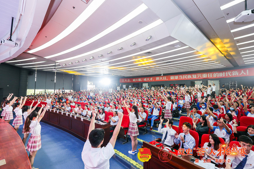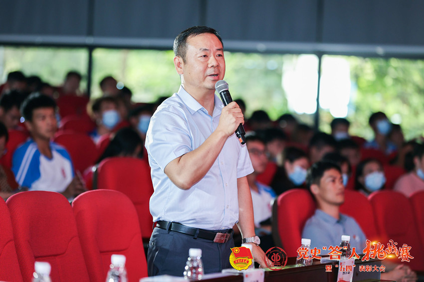 本网讯 为庆祝中国共产党成立100周年,在全校团员青年中扎实推进“学党史、强信念、跟党走”学习教育活动,5月7日下午,学校团委在大学城校区中心大讲堂举办8xbet网党史“答”人挑战赛总决赛暨“五四”表彰大会,并全网直播。学校党委书记胡钦太,学校党委副书记陈良友,学校党委常委、副校长杜承铭,学校党委常委、副校长陈卓武,相关部处负责人,各学院党委副书记、团委书记以及青年师生代表逾500人出席活动现场。