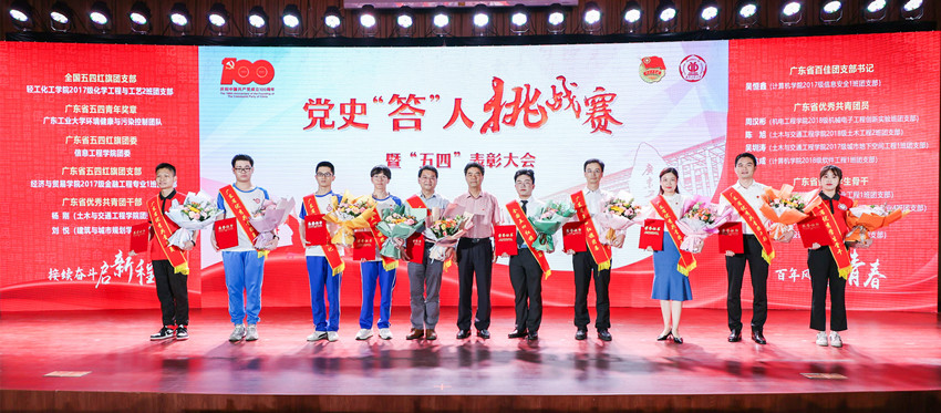 挑战赛结束后,大会还表彰了2020~2021学年“全国五四红旗团支部”“广东省五四青年奖章”“广东省五四红旗团委”“广东省五四红旗团支部”“广东省优秀共青团干部”“广东省百佳团支部书记”“广东省优秀共青团员”“广东省优秀学生骨干”,学校“红旗团委”“红旗学生会”“红旗研究生会”等先进集体和个人。表彰通过弘扬五四精神,选树先进典型,积极激励和引导广大青年立大志、明大德、成大才、担大任,以青春之我、奋斗之我,为祖国建设铺路架桥,为高水平大学建设添砖加瓦。