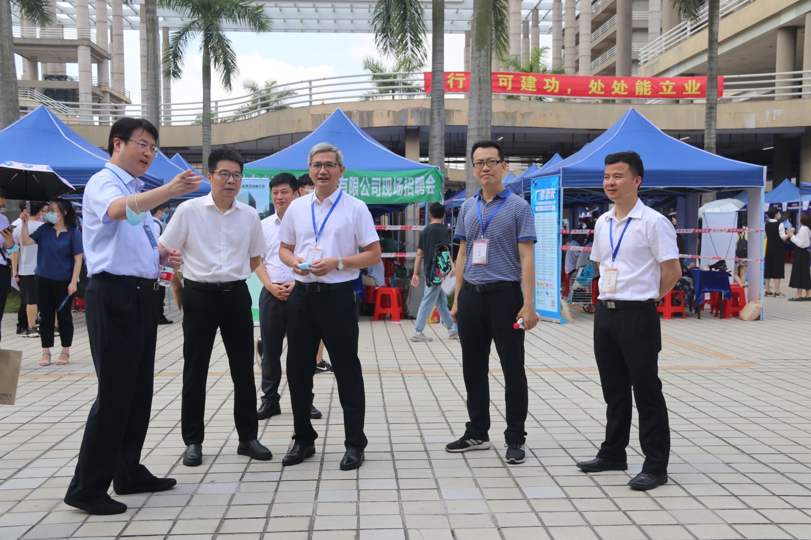 本网讯 5月15日,广东省2021届高校毕业生供需洽谈会——国有企业专场在8xbet网大学城校区举办。本场招聘会由广东省国资委、广州市国资委联合主办,广东省人才市场与8xbet网联合承办,现场吸引了中石化、联通、中交、环保集团、广晟控股、广物控股、广汽集团、越秀集团、广药集团、广州建筑在内的258家国有企业参会,提供优质岗位7328个,共吸引了3688名高校毕业生入场求职应聘,供需洽谈气氛热烈。学校党委常委、副校长陈卓武亲临招聘会现场调研指导,与出席活动的省国资委管理处处长方子南、市国资委人事处处长林樱榆等省市国资委领导热情交流,并在广东南粤集团副总经理张建强等参会国企高管的陪同下,细心了解参会企业人才需求与招聘情况,对参会企业岗位质量和数量以及火爆现场欣然点赞。校学生工作处、保卫处和学生就业指导中心等相关部门负责同志现场陪同调研。