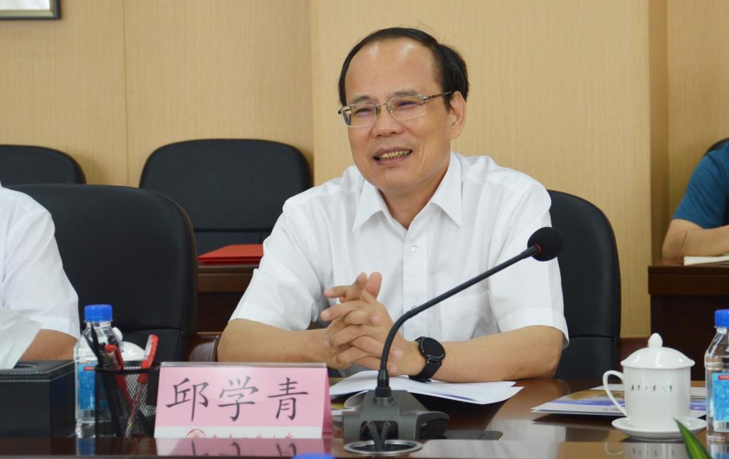邱学青对中建三局集团有限公司一行的到来表示热烈欢迎,并为中建三局在国家发展建设中作出的贡献感到钦佩。在迎接建党百年之际,中建三局参与建设两座“神山”医院的故事让大家深受感动,今后要将这样生动的案例融入学校的思政课中去,激发全体学生的爱党爱国热情,积极为祖国建设添砖加瓦。随后,邱学青用“大、实、特、快”四个字介绍了学校特色以及近年来积极推进高水平大学建设的情况,同时,希望通过校企产学研深度合作,学校与中建三局实现合作共赢,共同快速发展。