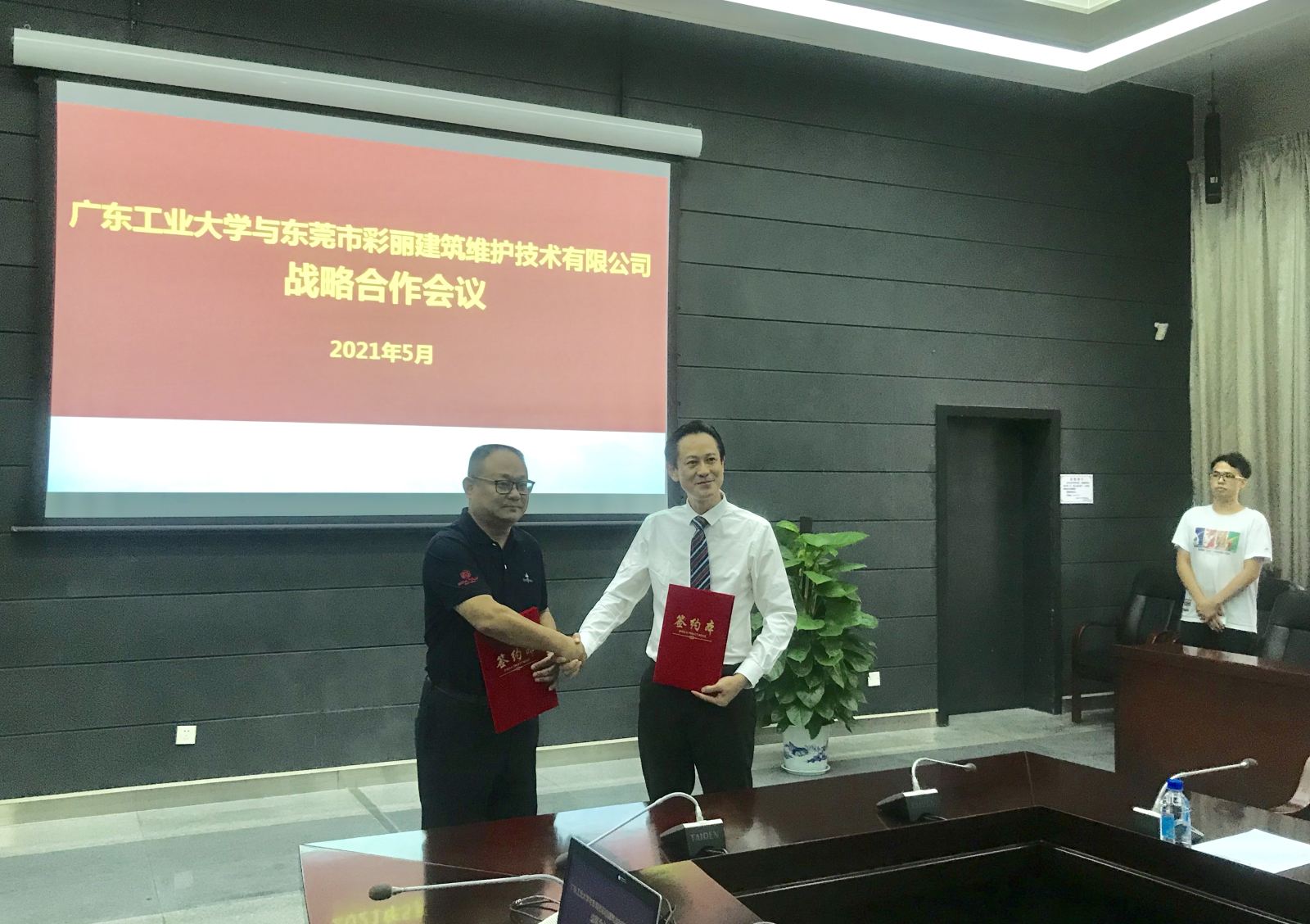 本网讯 为发挥高校与企业优势互补,推进校企战略合作,5月21日下午,我校与东莞市彩丽建筑维护技术有限公司(简称东莞彩丽)举行了战略合作签约暨联合创新实验室授牌仪式。