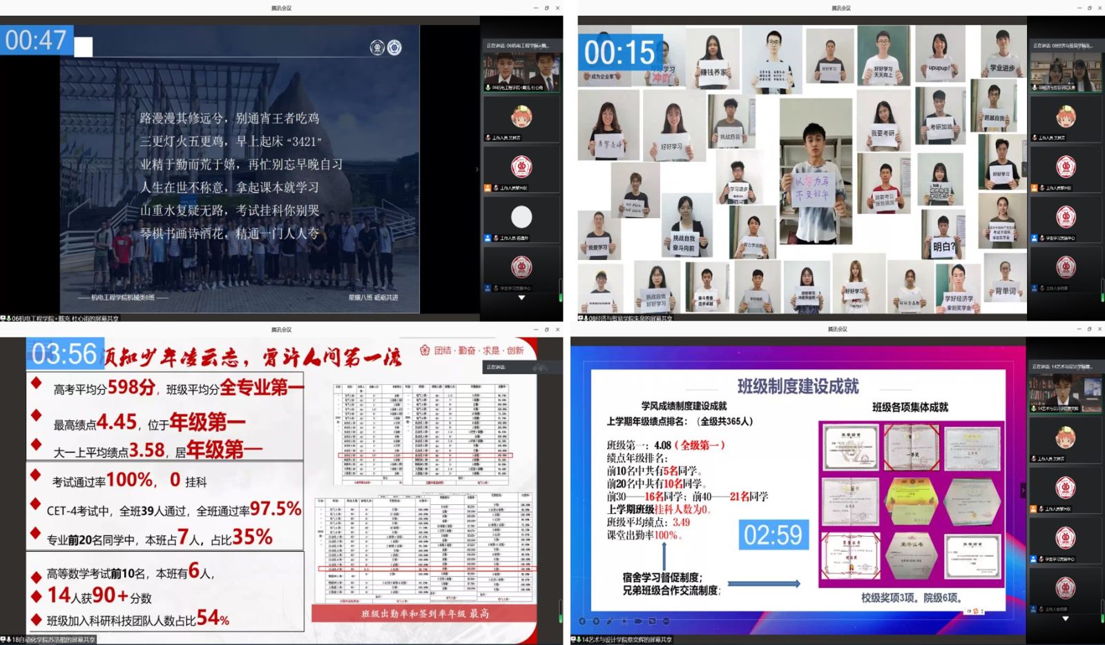 本网讯 5月28日晚,广工通过“腾讯会议”平台线上组织开展第十五届优良班风建设大赛。本次大赛由党委学生工作部、学生工作处主办,机电工程学院承办。党政办、组织部、宣传部、党委学生工作部、教务处、机电工程学院等部门相关人员应邀担任大赛评委。各学院辅导员、学生共计两千余人通过网络直播观看了此次比赛。