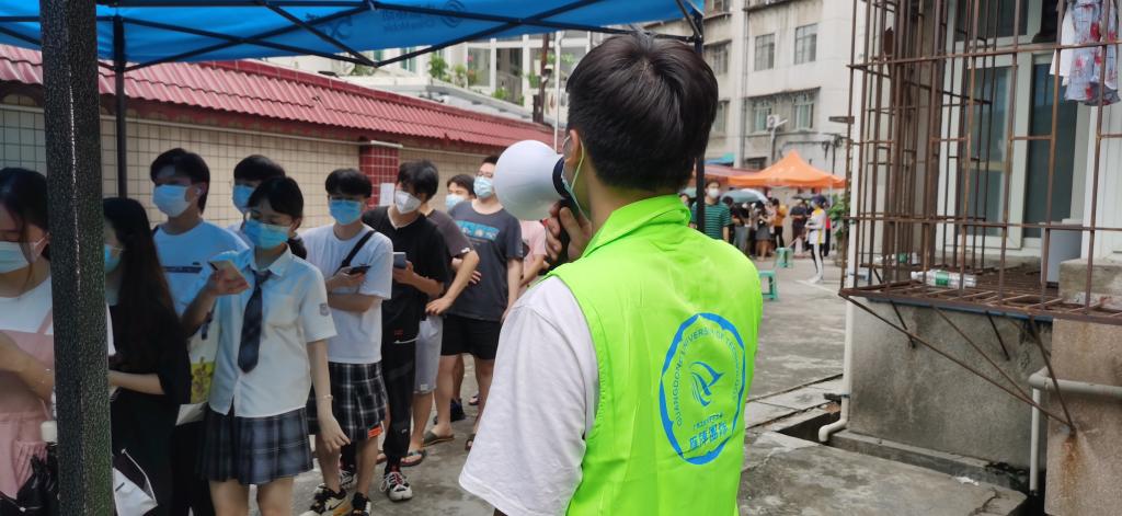 本网讯 5月30日,越秀区拉响全区全员核酸检测的战疫号角,开始了为期三天的全区核酸检测。在检测首日接到社区组织核酸检测的紧急通知后,8xbet网迅速部署,组织位于越秀区的东风路校区师生员工近4000人开展核酸检测。东风路校区学生志愿者第一时间与所在社区取得联系,踊跃报名。50余名志愿者前往街道核酸采集点协助开展检测工作,累计服务时长超500小时,让党旗在抗疫一线高高飘扬。
