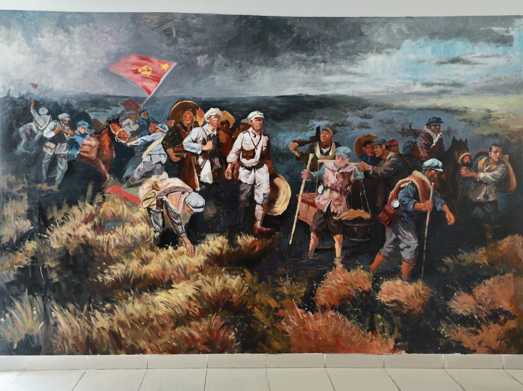 长征精神,代代相传 (学生团队临摹自张文源油画《红军过草地》)
