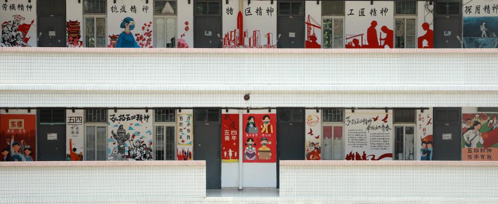 五四精神,传承有我。艺术与设计学院团委、学生会积极响应团中央“学党史、强信念、跟党走”的号召,不断丰富党史学习教育方式方法,在学党史、悟思想的过程中,通过了解广大爱国青年在祖国革命、建设、改革时期的先进事迹,选取了“务实青年”“战疫青年”“尚学青年”等元素,描绘出了国家广大青年弘扬五四精神、奉献火热青春的墙绘艺术作品。
