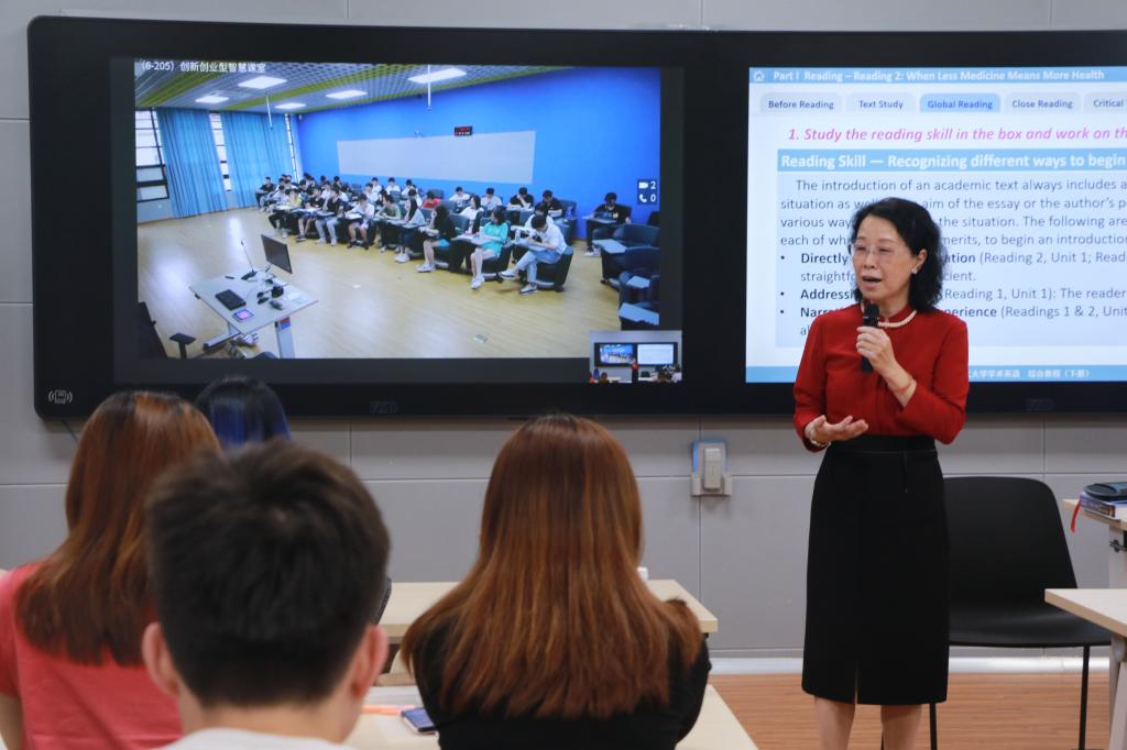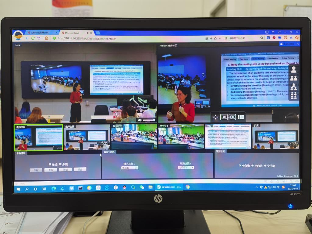 本网讯 学校实行多校区办学,教师常需跨校区上课。如何实现优质教学资源在不同校区共享,一直是困扰学校多年的难题。为了解决这一难题,学校结合党史学习教育,将“推进‘智慧广工’建设”、“加强公共课室设施设备整体提升”列入学校2021年发展大事中,着力打造智慧教室,并利用5G进行4K远程直播授课的方式,实现实时同步授课的“零距离”,解决了师生跨校区上课难的问题,将“我为群众办实事”落实到位。