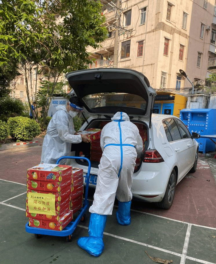 社区封闭管理后,物资只能到达社区集散点,最后一公里的配送成为了大问题。封闭初期,社区内的运输工具缺乏,大家只能靠着人力一件件的往里送,但是居民的大米、肉菜、药品等急需的生活物资运输成为亟待解决的大问题。没有任何犹豫,他驾驶着自家的小汽车,装满货物,穿行在各个小区之间,将必需品送上门交到社区居民的手中。有一次急着送货,他还不小心把汽车给刮了一道大口子,罗逸浩笑着说:“不准备修了,这道印记正是参与抗疫最好的证明呀!”