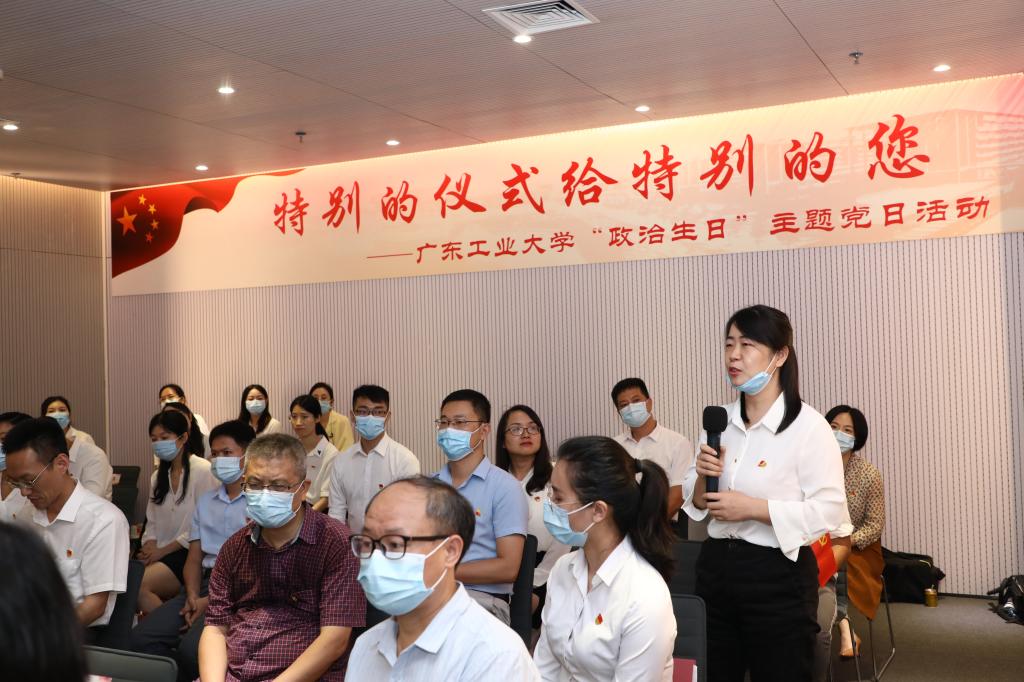 朴实的语言、真挚的情感引起了党员们的共鸣。胡钦太认真倾听,动情地指出,回顾广工历史和各阶段涌现出的先进典型,学校始终与国家同呼吸、共命运,坚持“与广东崛起共成长,为广东发展做贡献”的精神底色。广工的共产党员传承红色基因,在秉持初心、坚守初心、锤炼初心中不断前行,一步一个脚印镌刻在广东大地上,业绩丰硕。他寄语广工党员,要从百年党史中汲取智慧和力量,在新征程新起点上一要不忘初心、牢记使命,切实落实立德树人根本任务,为党育人,为国育才;二要改革创新,激发活力,敢于啃“硬骨头”,深化改革推动学校高质量发展;三要内强素质,外塑形象,提升综合素质与能力,强化示范引领作用,为人师表,率先垂范;四要扎根广东,面向世界,把学校发展深度融入党和国家需求,遵循教育规律,弘扬优良传统,自觉肩负起新时代赋予高校的历史使命。