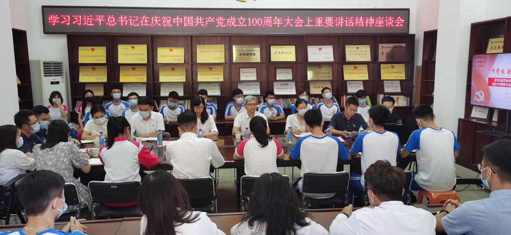座谈会上,学校专职团干董誉、刘思莞,学生骨干郑欣琪、吴嘉明、吴业伦、刘鹏分别从加强思想引领、做好基础团务、凝聚团结同学、党史学习教育、防疫志愿服务、弘扬传统文化等方面,回顾了他们的入党初心,讲述了学习工作中的难忘经历,分享了收看庆祝大会的感悟心得,表达了以实际行动向党的生日献礼的决心。