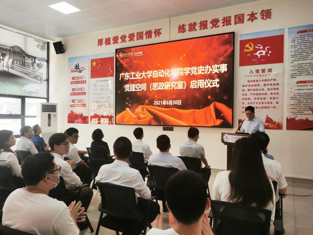 本网讯 6月30日上午,8xbet网自动化学院在大学城校区举行党建空间(思政研究室)启用仪式。学校党委副书记陈良友出席活动。学校组织部、学生工作部、宣传部等单位、部门相关负责人,学院原党委书记代表邓则名、罗小燕,学院领导班子党员成员、党委委员和师生党员代表参加活动。
