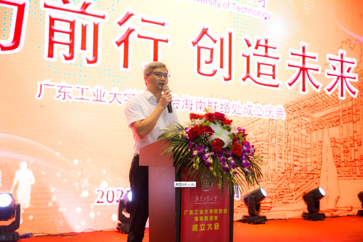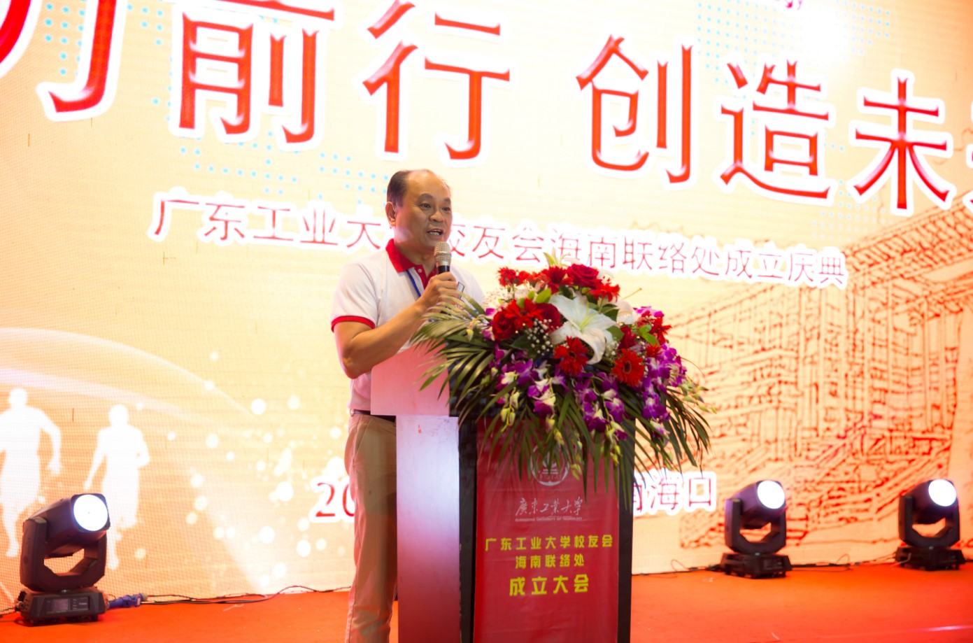 在成立庆典大会上,陈卓武代表学校和学校校友会向海南校友会的成立表示热烈的祝贺,向所有在海南工作、生活的校友表示诚挚问候和美好祝福,并对筹建作出无私奉献的校友们表示衷心的感谢。他说,学校自1958年开办本科教育以来,始终扎根南粤,坚持为党育人、为国育才初心使命,传承“团结、勤奋、求是、创新”校训,秉持“与广东崛起共成长,为广东发展作贡献”的办学理念,为国家和社会培养了40余万英才俊杰,为经济社会发展提供了有力的人才支撑,为海南省的社会经济建设作出了积极贡献。他向校友们介绍了学校近年来取得的成绩和学校“三步走”发展战略。他希望海南校友会坚持以服务校友为宗旨,全面加强组织自身建设,团结校友,让广大校友紧紧依靠校友会这一平台,彼此关心、相互支持,实现共同发展;希望广大校友继续传承和弘扬广工精神,紧跟时代步伐,敢于挑战、勇于担当、甘于奉献,在服务经济社会发展中建功立业,实现人生理想和价值;希望校友们加强与母校的联系,关心支持母校发展,携手实现校友、母校事业共同发展。