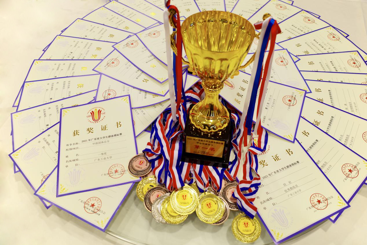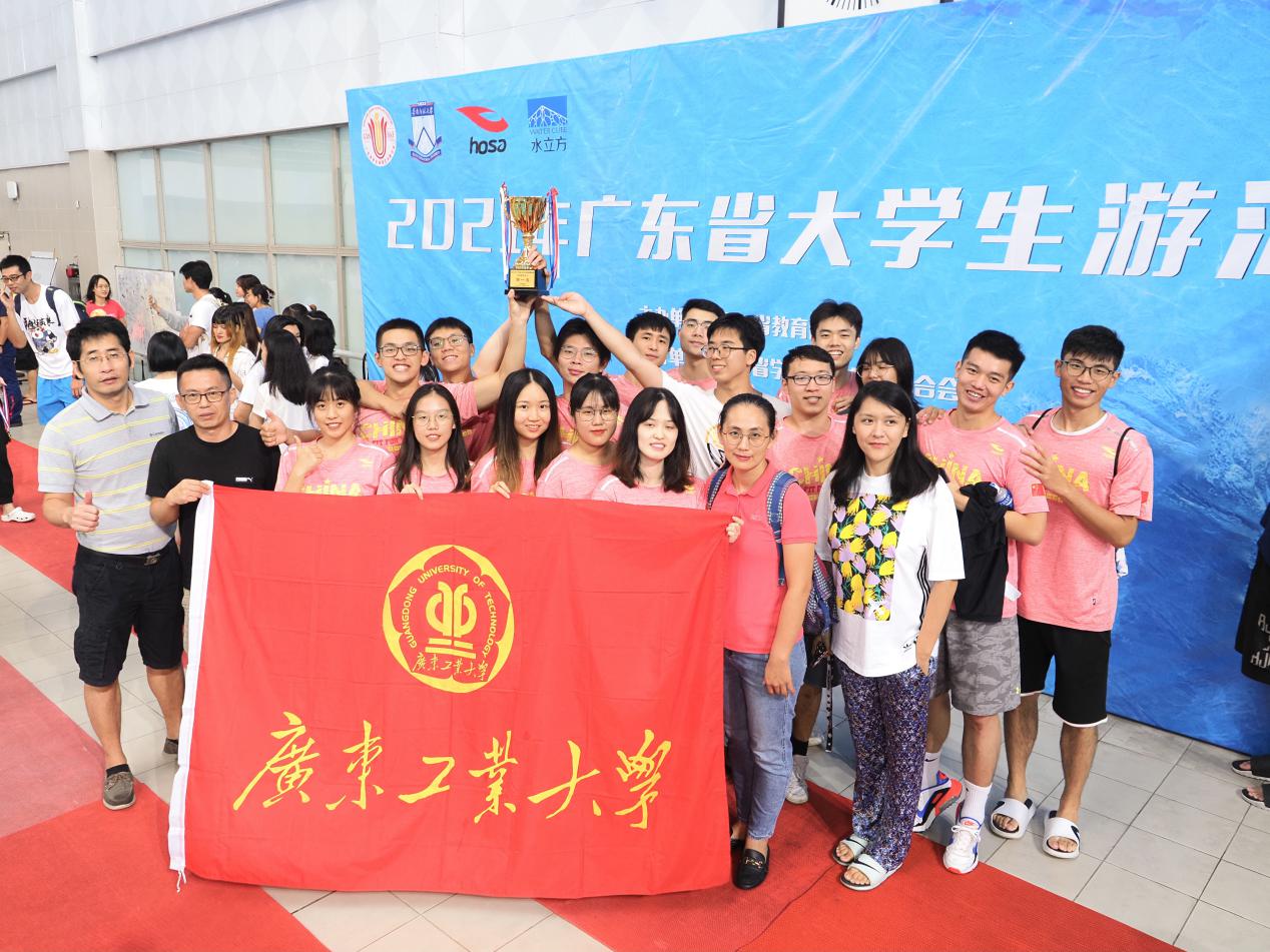 本网讯 2021年广东省大学生游泳锦标赛于7月20-21日在华南师范大学大学城校区游泳馆落下帷幕。广工游泳队共派出16名学生运动员参加比赛,经过两天的激烈角逐,最终共斩获6金2银5铜,取得甲组团体总分与金牌数双第一的优异成绩。赛场上充分展现出我校大学生的朝气蓬勃、奋勇拼搏、积极向上的精神面貌。此外,4位老师均获得“优秀教练员”称号。