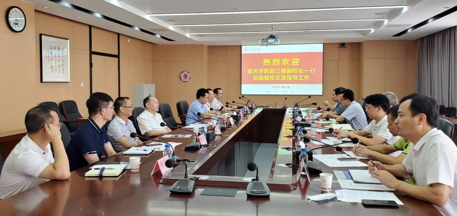 本网讯 7月27日下午,韶关学院副校长赵三银,校长办公室、计划财务处、招标与投标中心、资产与实验室管理处、数据与信息管理中心相关负责人等一行7人到访我校,围绕智慧校园信息化建设、“银校”合作项目政策等工作进行深入交流。学校党委常委、副校长阳爱民会见了赵三银一行,学校党委办公室、校长办公室、财务处、实验室与设备管理处、招投标中心和网络信息与现代教育技术中心等相关部门负责人参加了座谈会。