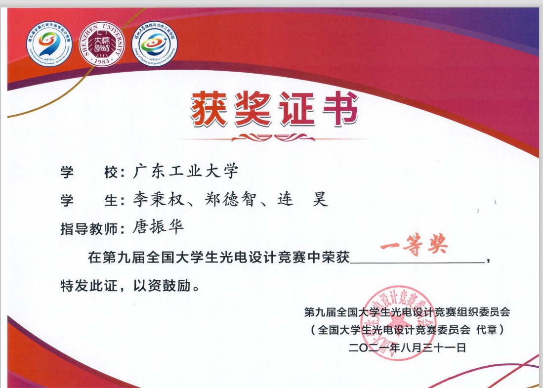 全国大学生光电设计竞赛为教育部全国性A类赛事,是一项全国高校光电类专业重要的学科竞赛赛事,已成为高校培养学生创新思维、工程能力和综合素质的重要平台。此次比赛,共有来自227所高校的1925个项目、9201名师生报名参加本届竞赛。经过七个分赛区选拔,最终有来自89所高校的233支参赛队。本届全国赛中,47支队伍获得一等奖,我校参赛队伍总分排名15,71支队伍获得二等奖,115支队伍获得三等奖。