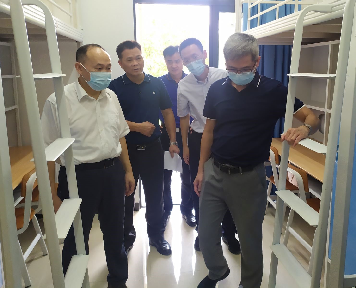 在细中抓、在实中做,筑牢校园健康安全防线。学校党委深入学习贯彻落实习近平总书记关于疫情防控的重要讲话和指示批示精神,把疫情防控作为党史学习教育的一项重要内容,在防控工作中进一步砥砺初心使命。校领导深入校园开展疫情防控工作调研,在调研时强调,要落细落实各项防控措施,特别是盯紧重点场所、重点人员和关键环节,保障师生员工健康安全。8月15日-26日,校领导先后赶赴龙洞校区、东风路校区、大学城校区、番禺校区,走访各学院和物业,检查食堂、学生宿舍、商铺、校园门岗执勤点等重点场所,对储备开学防疫物资、设置预检分诊通道和医学集中观察区等提出明确要求,在调研中发现问题、解决问题,提升疫情防控工作成效。