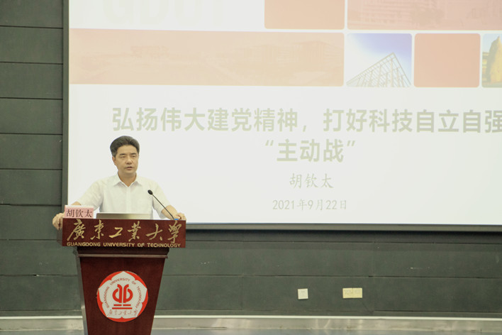 站在历史交汇点,作为广工学子应该在打好科技自立自强“主动战”中发挥怎样的作用?胡钦太从全球科技革命演进、世界科技力量格局重构、高新科技竞争态势等三个方面分析我国的科技面临的机遇和挑战,勉励同学们要弘扬伟大建党精神,努力学习、增强本领,勇于创新、勇于挑战,勇攀科技高峰,以实现中华民族伟大复兴为己任,矢志建设科技强国。