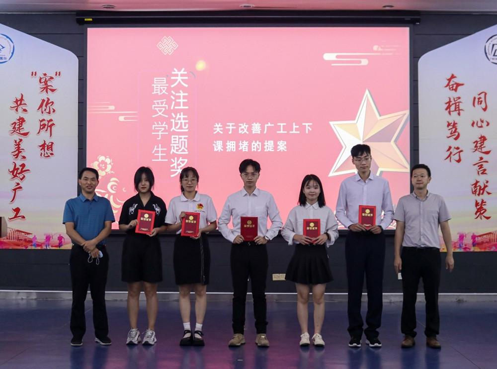 决赛中,10支参赛团队围绕提案价值、提案实施方法、实施可行性等多方面进行了详细叙述,为美丽广工建设建言发声。经过激烈角逐,“关于改善广工上下课校道拥堵的提案”获得本次比赛一等奖和最受学生关注选题奖;“关于热水供应现有问题及解决方案的提案”“关于向空间借空间,校园综合社区建设工程的提案”获得二等奖;“关于规范学生宿舍报修服务管理的提案”“关于提高8xbet网失物招领服务的提案”“关于图书馆跨校区线上预约图书服务的提案”获得三等奖等。