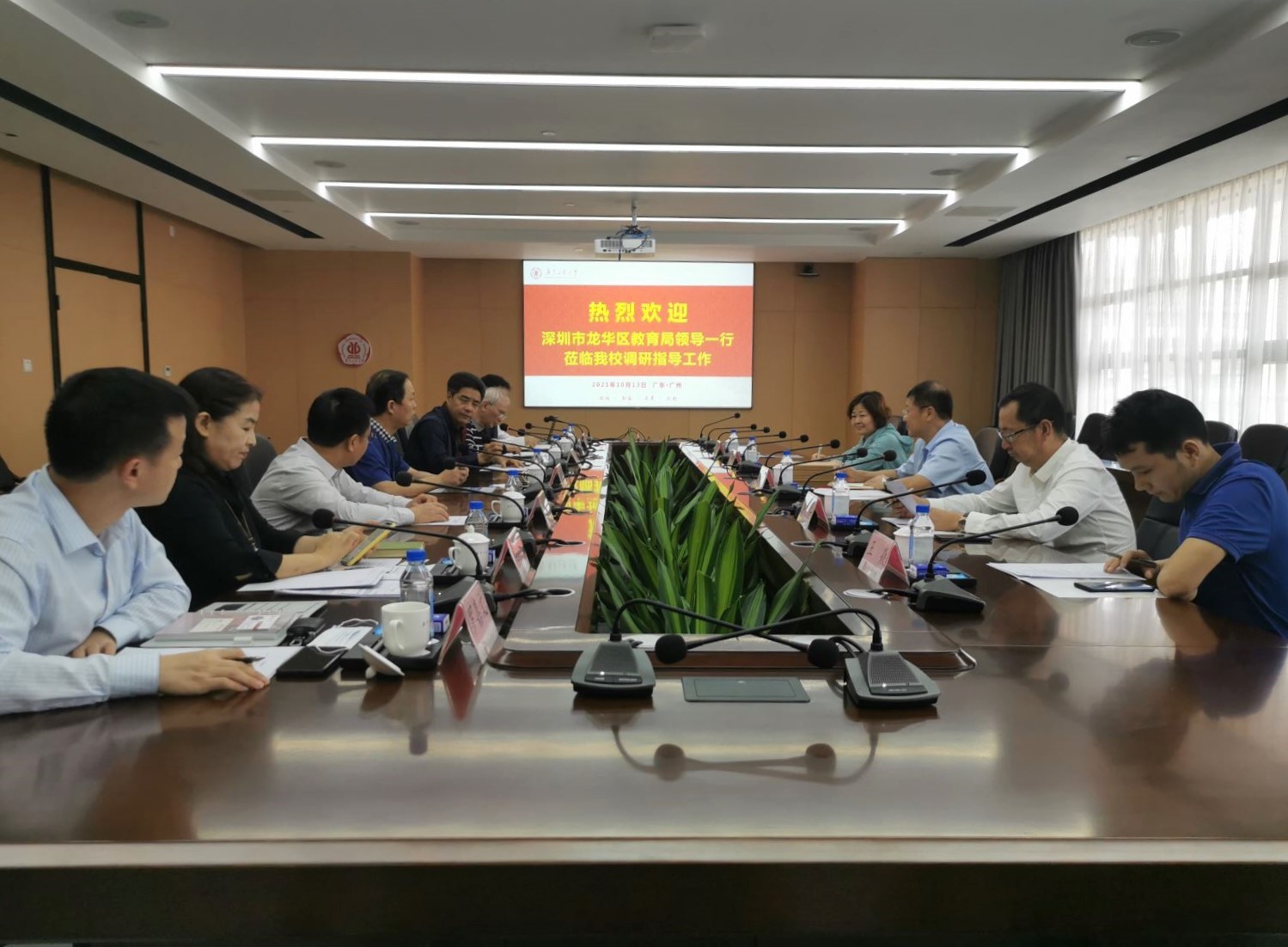 10月13日,广东省教育厅基础教育与信息化处处长赵琦、深圳市龙华区教育局局长王玉玺、广东省基础教育与信息化研究院副院长叶惠文等一行来学校调研,围绕加强校地人才培养、密切交流合作等相关主题召开座谈会,并调研了省部共建精密电子制造技术与装备国家重点实验室和“工大创谷”。学校党委书记胡钦太出席座谈会,并陪同调研。