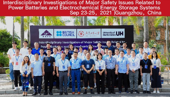 9月23日-9月25日,由中国8xbet网(Guangdong University of Technology)和英国赫特福德大学(University of Hertfordshire)主办的中英国际电化学储能系统安全研讨会(IEESSW)在广东省广州市成功举办。此次研讨会获得中方国家自然科学基金国际(地区)合作与交流项目经费资助,同时获得了英方英国文化教育协会牛顿基金(BritishCouncil-Newton Fund)的大力支持。由于新冠肺炎疫情影响,此次研讨会采用线上线下同步的方式,中方专家及青年学者采用线下参会方式,英方专家及青年学者采用线上视频会议同步的方式参会。本次研讨会聚焦新能源汽车行业国际国内研究热点—动力电池及电化学储能安全牵引的跨学科大纵深科学问题,吸引来自清华大学、Imperial College London、重庆大学、University of Warwick、中国科学院上海硅酸盐研究所、中国科学技术大学、Loughborough University、中国矿业大学、University of Exeter、上海交通大学、Coventry University、华南理工大学、美国国际铜专业协会、江苏大学、Brunel University London、佛山环境与能源研究院、University of Lincoln、北京科技大学、University of Surrey、郑州大学、广州能源检测研究院、University of Portsmouth、深圳普瑞赛斯检测技术有限公司、Teesside University、苏州玛瑞柯测试科技有限公司、暨南大学、中国计量大学、南方科技大学等30余所中方和英方知名高等院校、科研院所、工业界的80余名科研工作者参与此次中英电化学储能系统安全研讨会。