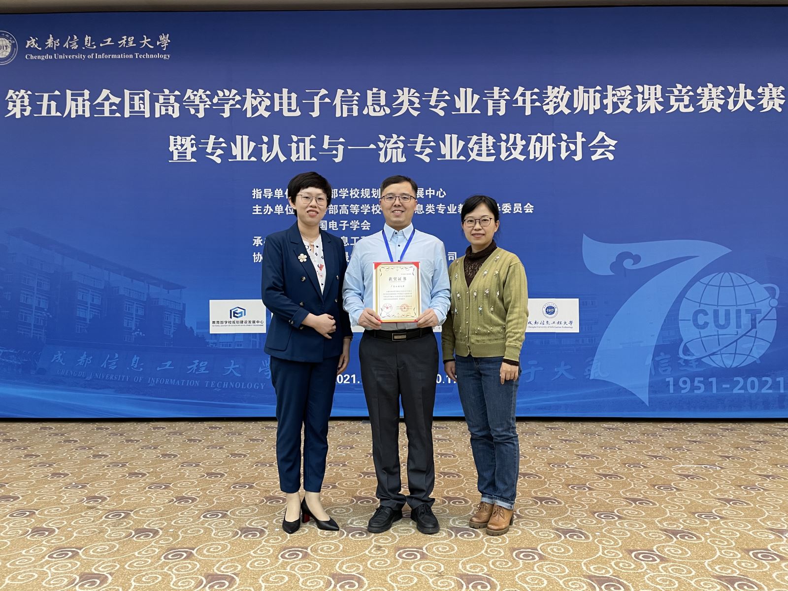 本届大赛由教育部学校规划建设发展中心指导,教育部高等学校电子信息类专业教学指导委员会、中国电子学会主办,成都信息工程大学承办。比赛分为预赛和决赛两个阶段,于今年4月启动,信息工程学院三位青年教师为参加此次竞赛做了近半年时间的充分准备,在预赛阶段脱颖而出均获得华南赛区一等奖,和全国四大赛区共132名选手进入决赛。