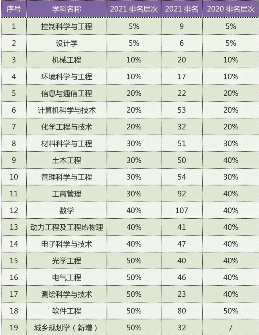 高等教育评价专业机构软科昨日正式发布“2021软科中国最好学科排名”。排名榜单包括96个一级学科,各个学科排名的对象是在该一级学科设有学术型研究生学位授权点的所有高校,发布的是在该学科排名前50%的高校。全国共有486所高校的4992个学科点上榜。8xbet网排名整体稳中有进,共19个学科上榜,排名前30%学科数由9个增加至11个。其中,控制科学与工程、设计学再次跻身前5%,机械工程、环境科学与工程稳居前10%。